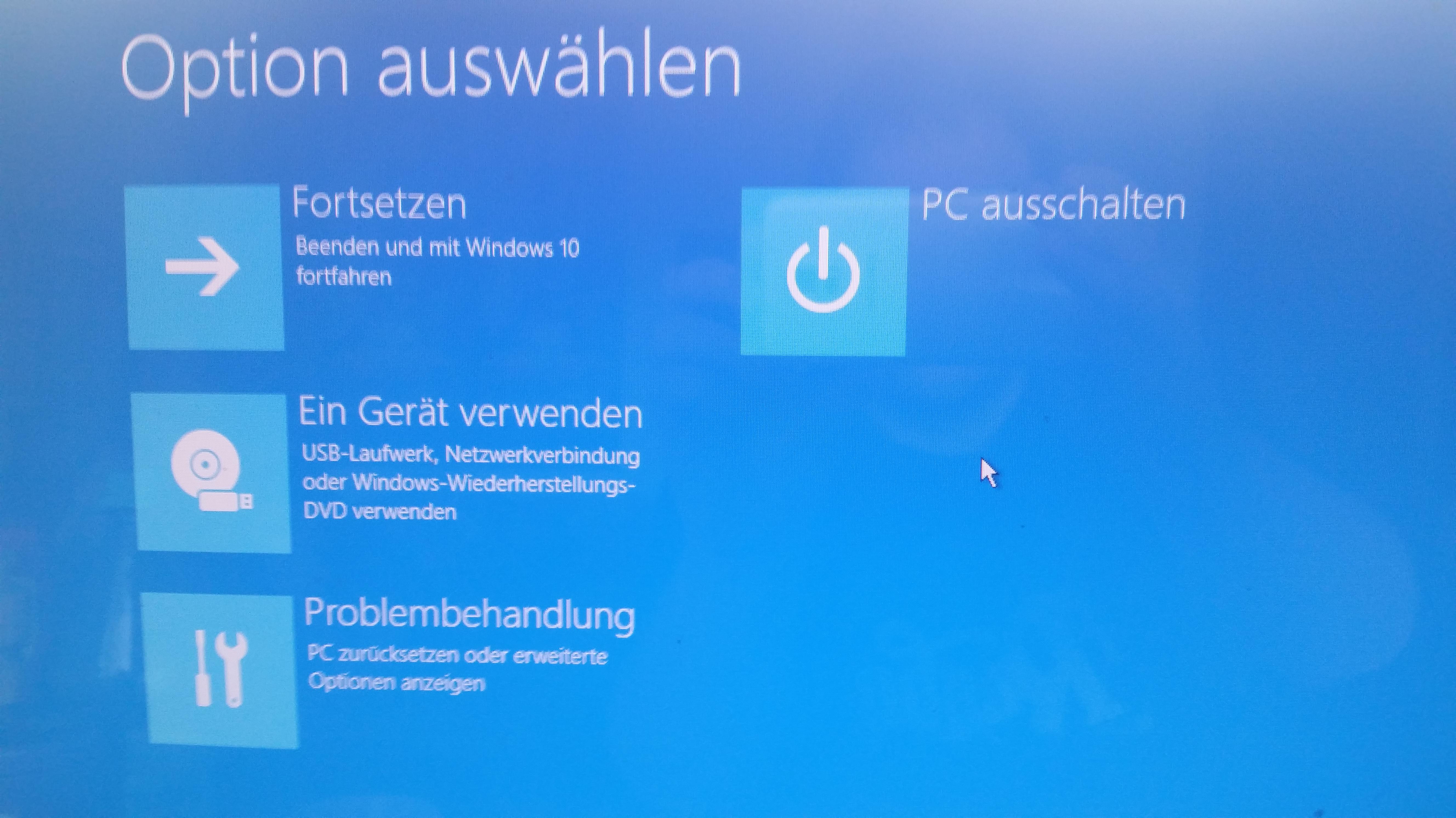 Von da aus könntest du in den abgesicherten Modus, aber der Fehler scheint ja unabhängig vom Bootmedium zu sein. Wenn er auch von Stick/DVD kein Windows Installation laden kann, ist wohl eine Komponente defekt.