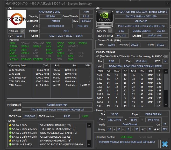 Gebooted wird über eine 500GB WD SSD. Das ganze Läuft mit einem Ryzen R5 3600 und 32GB DDR3-3000.