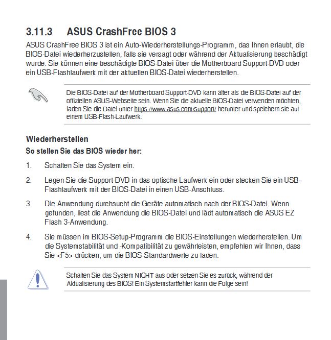 Habe das Ganze mehrfach versucht, USB auf FAT32 formatiert und immer das selbe Ergebnis, nur bei allen anderen Versuchen blieb der Bildschirm immer schwarz. Habe auch schon die CMOS-Clear Taste versucht, ebenfalls ohne Erfolg.