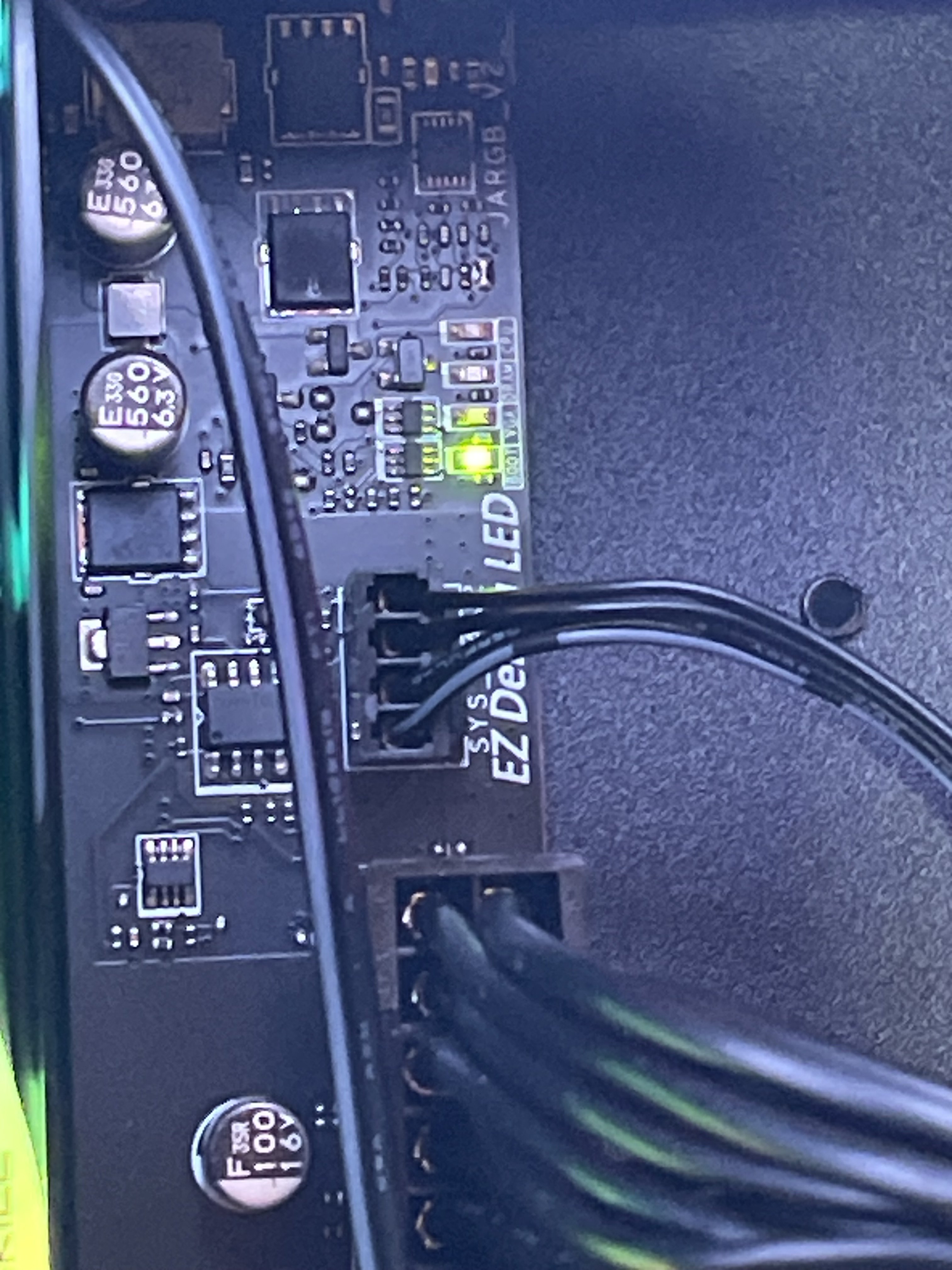 Das was jedoch auffiel ist das die EZ Debug LED bei der letzten LED nachdem Start grün aufleuchtete und bei „boot“ stehen blieb und nicht mehr ausging. Im Benutzerhandbuch steht dass wenn die LED bei „boot“ stehen bleibt, es folgendes bedeutet „Boot - indicates the booting device is not detected or fail“. So wie ich das verstehe könnte das Laufwerk bzw. das eingebaute Speichermedium (die 990 Pro Nvme) einen Schaden haben. Aber ergibt es sinn das sich dann die Lüfter nicht drehen und der CPU Kühler Display der Aio ausbleibt? Mir ist zu Beginn die Nvme SSD aus 1 Meter Höhe suf den Boden gefallen, aber in der Packung. Könnte das der Nvme SSD so geschadet haben das diese jetzt kaputt ist?