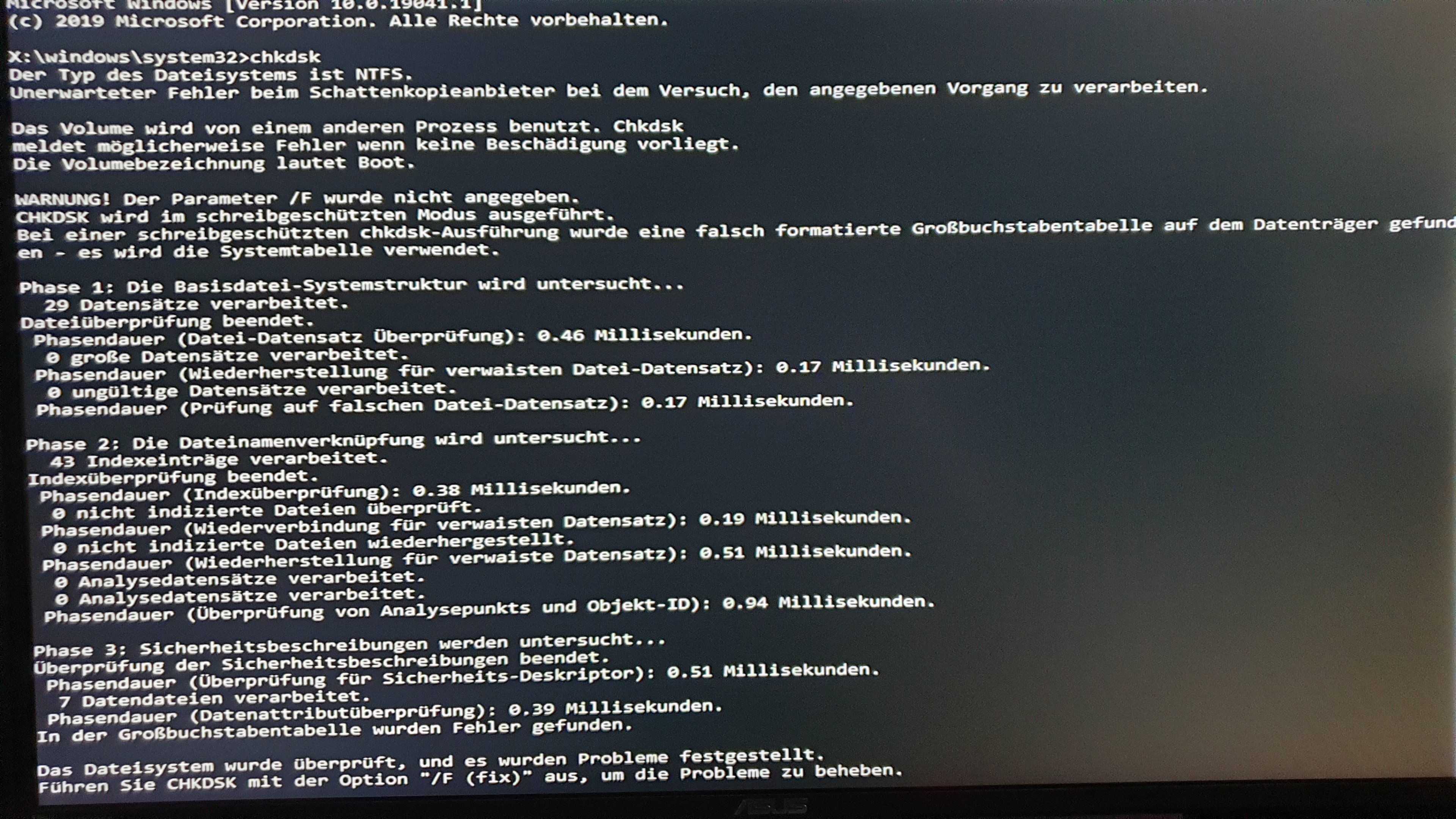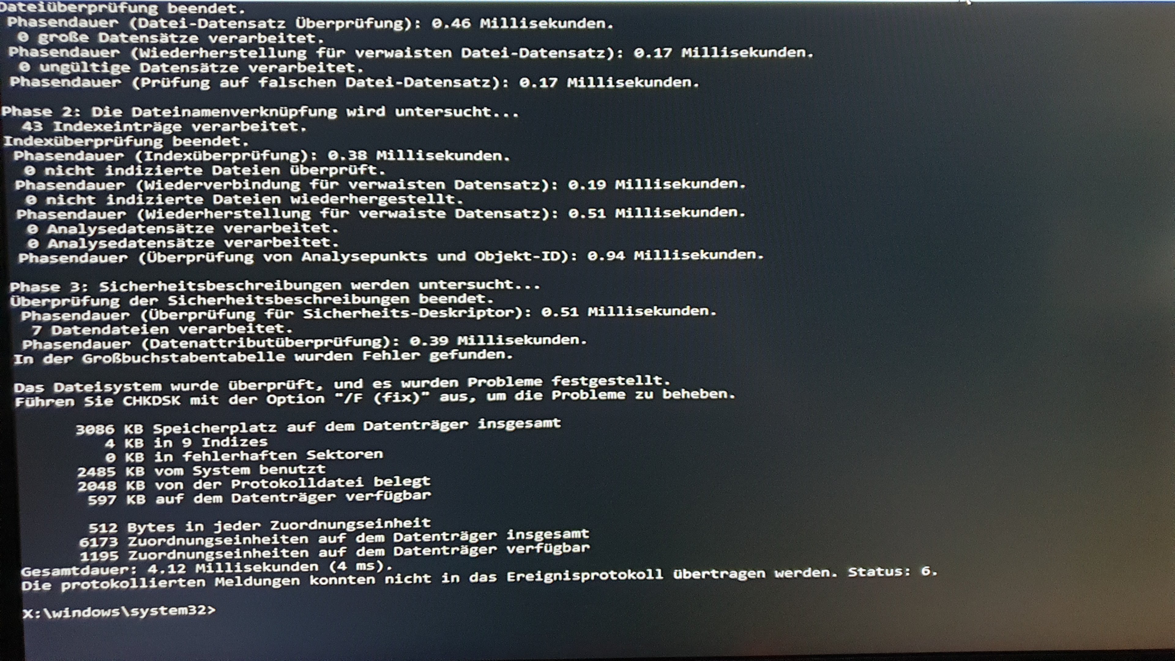 Seitdem startet der PC gar nicht mehr und ich bekomme immer wieder Bluescreens. Automatische Reparatur schlägt fehl, abgesicherter Modus startet auch nicht und manchmal bekomme ich nicht einmal ein Bild, also schwarzer Bildschirm.