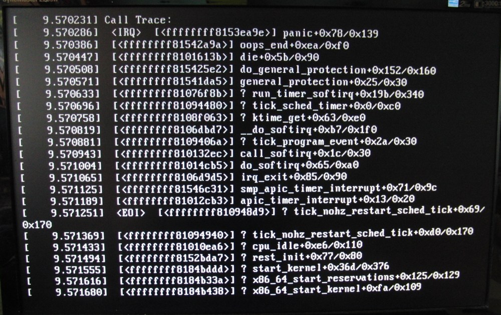 Zwischendurch konnte ich, wie erwähnt, ein Betriebssystem booten. Bei dem Booten von Ubuntu trat zuletzt eine etwas erschreckende Meldung auf: "Call Trace <IRQ> ... panic ..." (siehe Foto im Anhang).