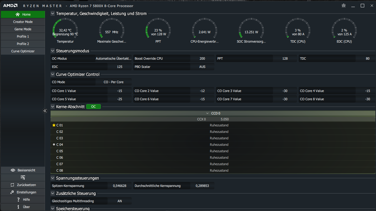Den benutze ich NUR zu auslesen, darüber stelle ich nichts ein. ALLE Einstellungen mache ich über das BIOS direkt.