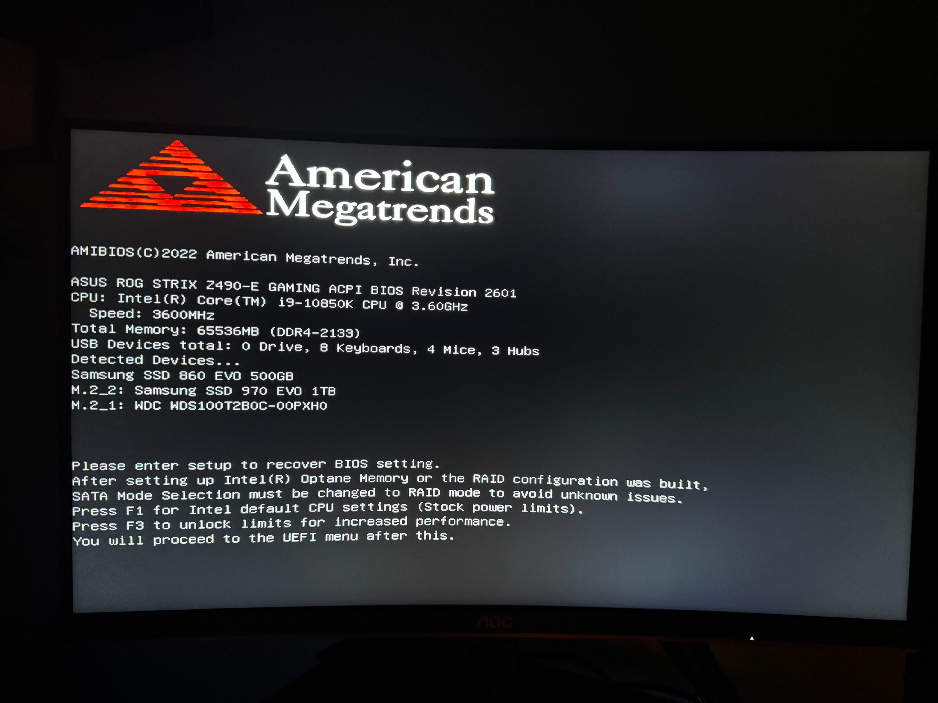 Ich kann den Fehler nur beheben, indem ich ins BIOS gehe und es beende. Allerdings kann ich dort keine Änderungen vornehmen, da die F10-Taste (Speichern & Beenden) nicht erkannt wird.