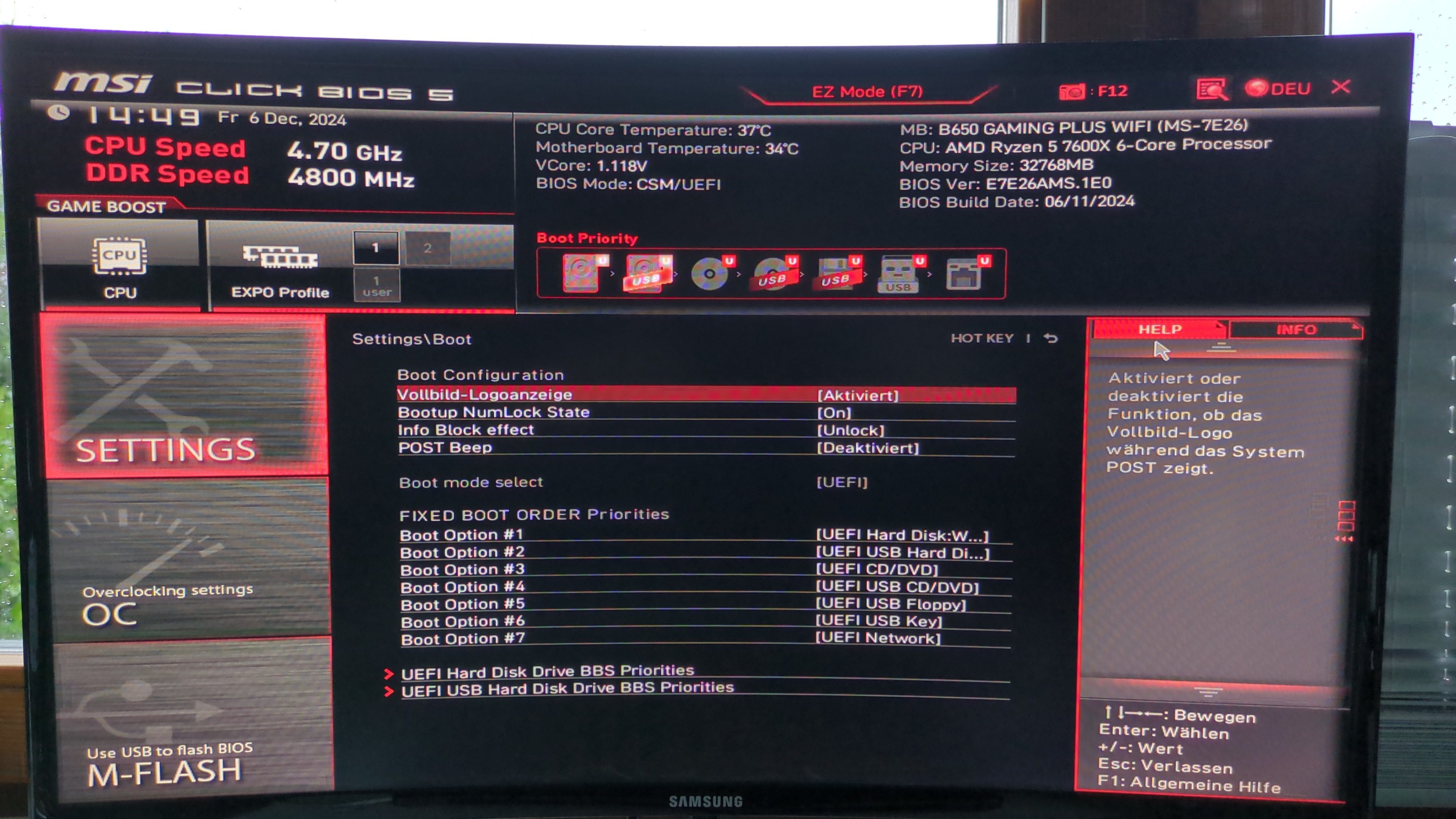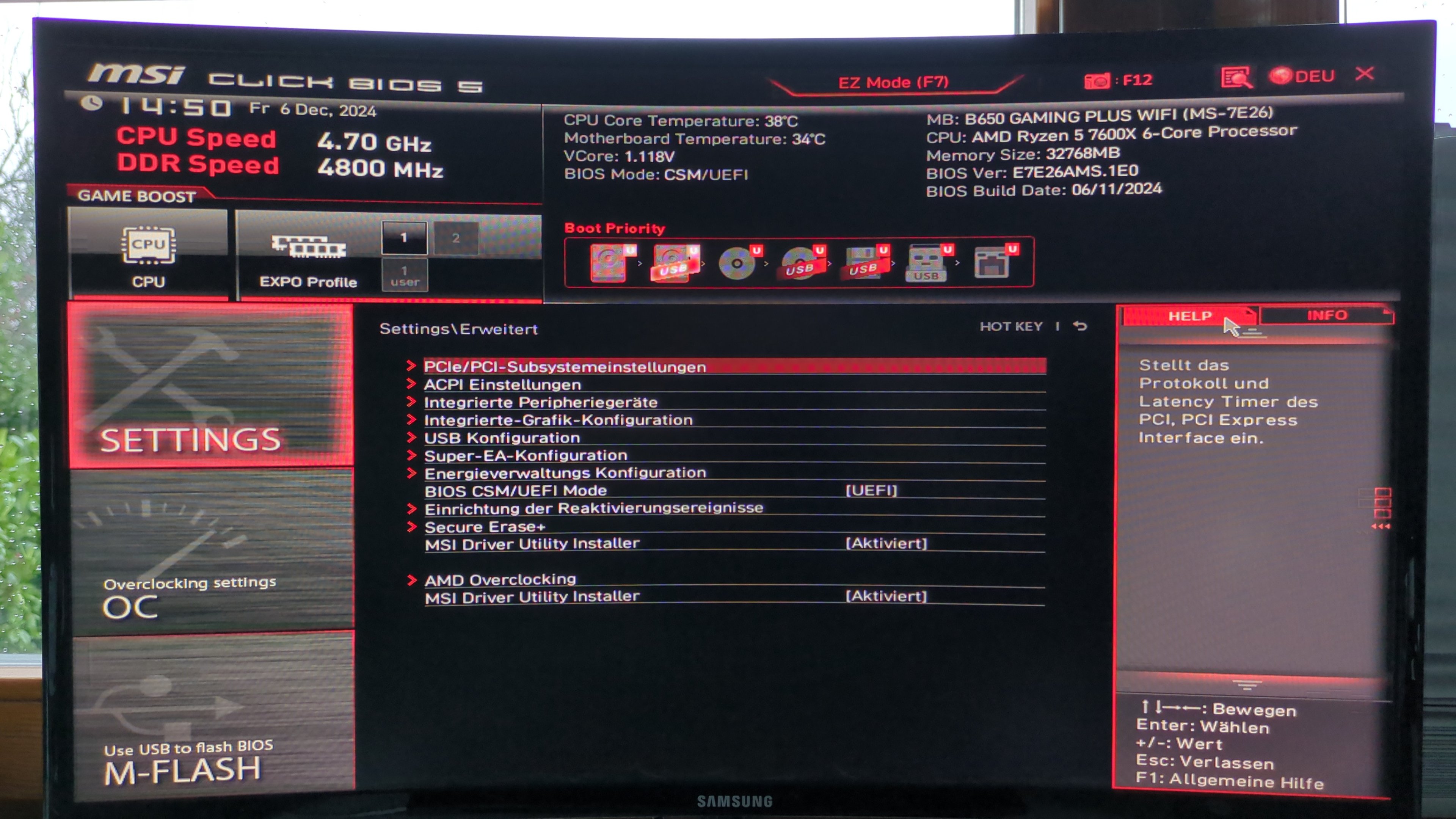 - Mainboard: MSI B 650 Gaming plus Wifi