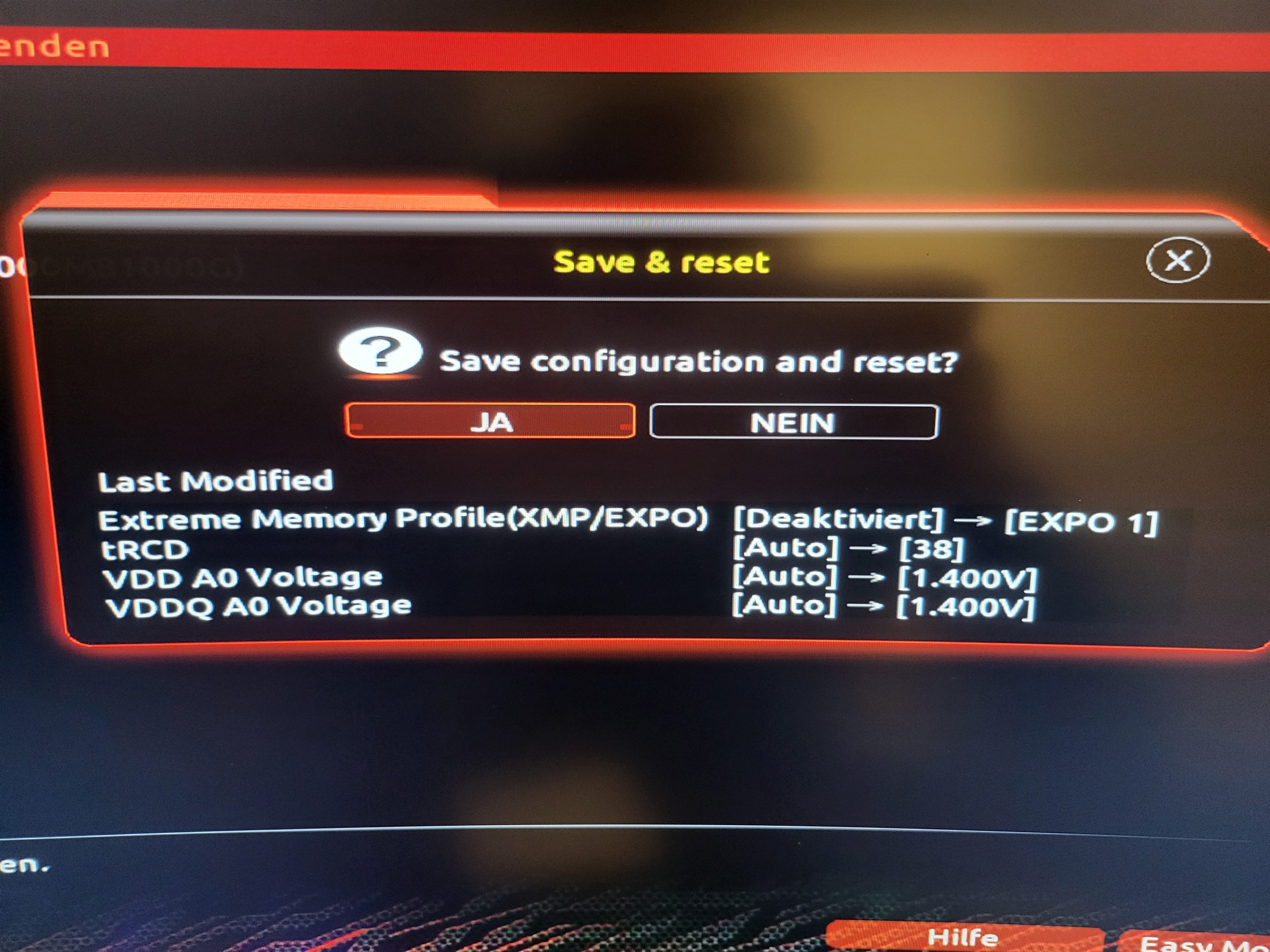 ich versuche aktuell meinen RAM im EXPO-Profil laufen zu lassen, was leider bisher nicht von Erfolg gekrönt ist.