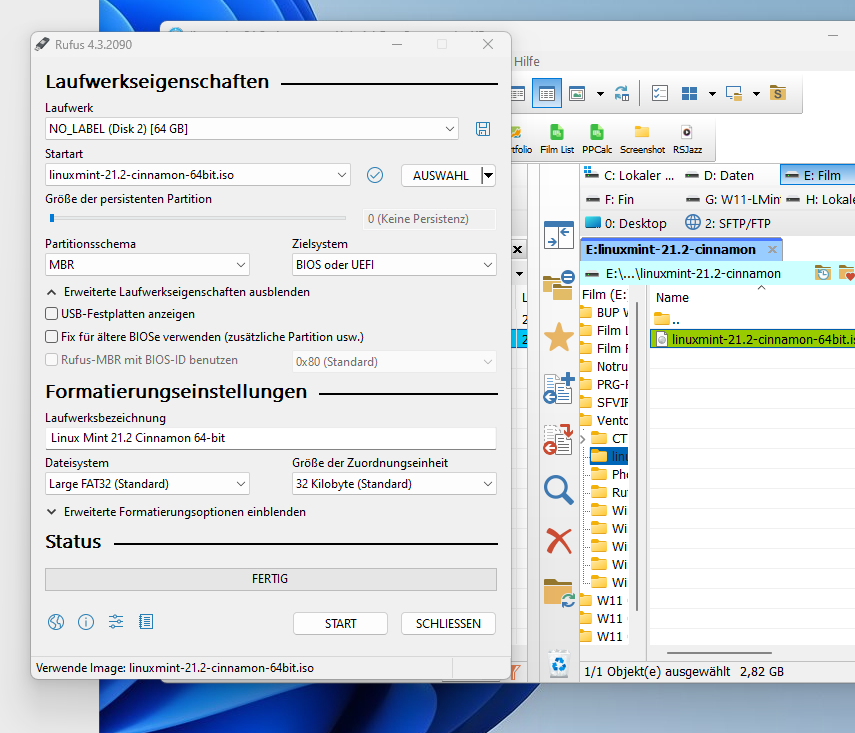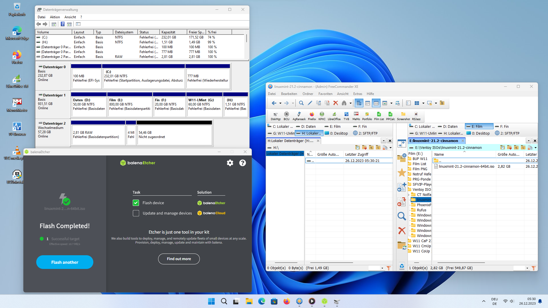 Ich hab mal eben einen Stick mit Balena Etcher und Linux-Mint erstellt.