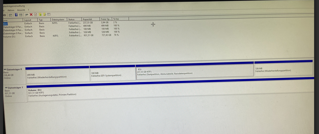 Ich hab sie schon seit 1 Jahr aber hab da nur spiele drauf sonst nichtsSuperHeinz schrieb:Hm, das ist jetzt aber reichlich verworren. Denn in #5 steht bei Datenträger 0, Laufwerk C: (Startpartition,...) und bei Datenträger 1, Laufwerk D: (Auslagerungsdatei, Primäre Partition). Eine weitere Startpartition sollte sich auf der M2-SSD befinden.