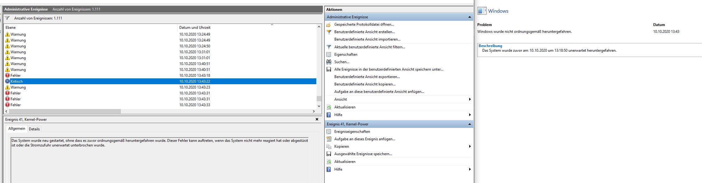 Die Windowsfehlermeldung habe ich als Bild beigefügt. Ich vermute durch "Kernel Power" auf das Netzteil und nicht die GPU...