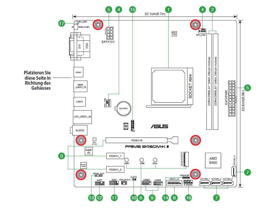 - Mainboard: Asus Prime B450M-K II Mainboard Sockel AM4