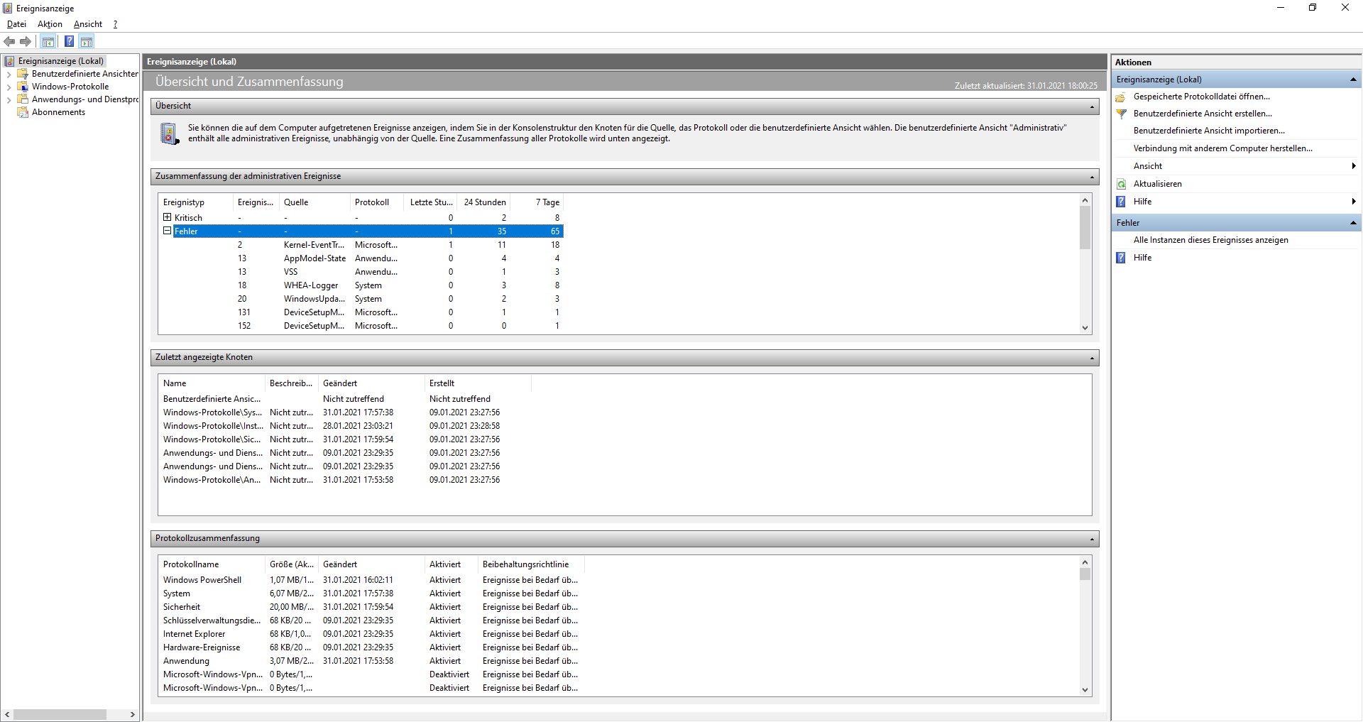 Aus der Ereignisanzeige lässt sich nicht soviel Rauslesen außer Kernel power 41 und WHEA- Logger , allerdings habe ich noch einige mehr Fehler in der Ereignisanzeige , kenne mich jedoch nicht aus, und Google hilft auch so gut wie gar nicht.