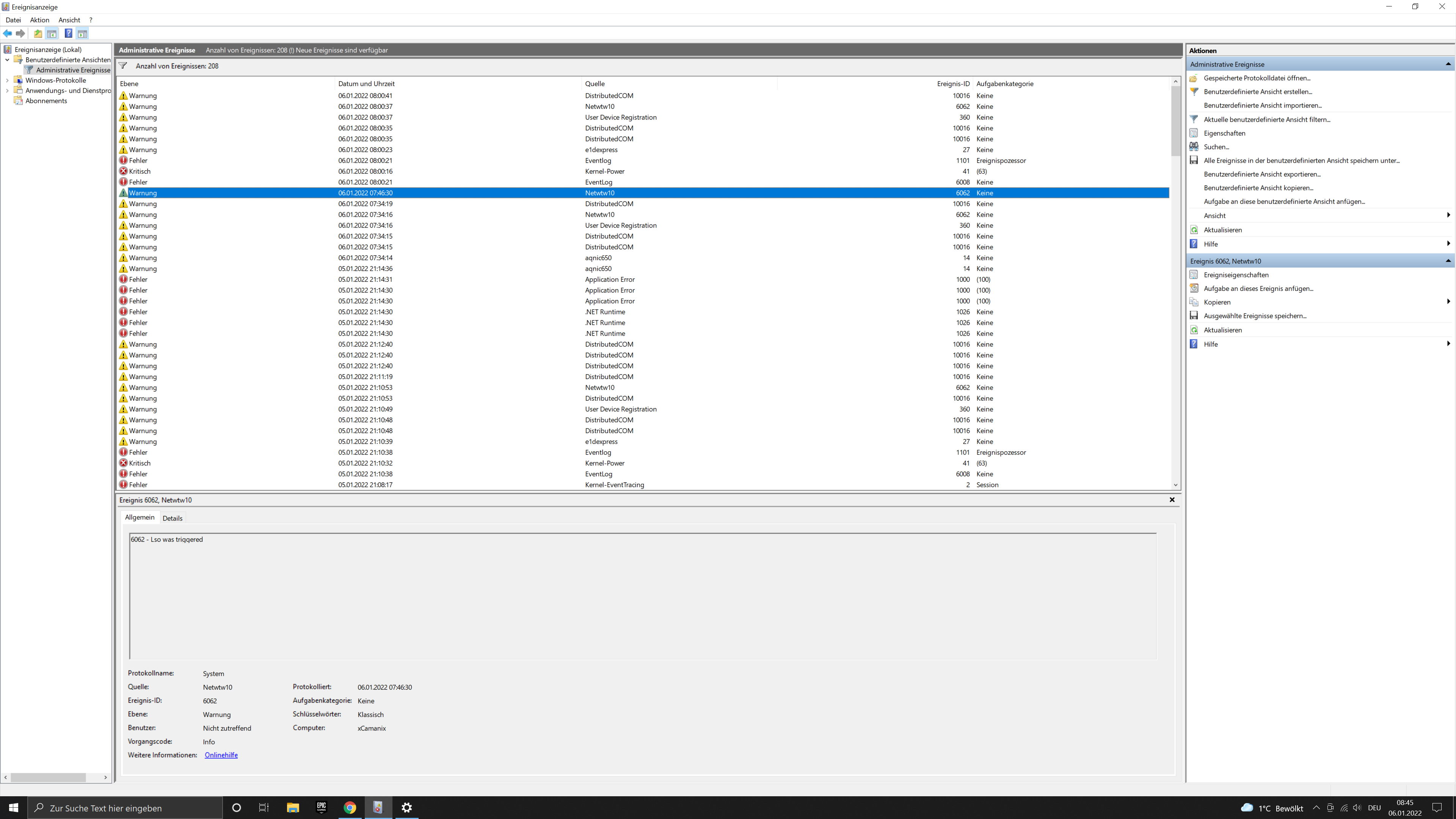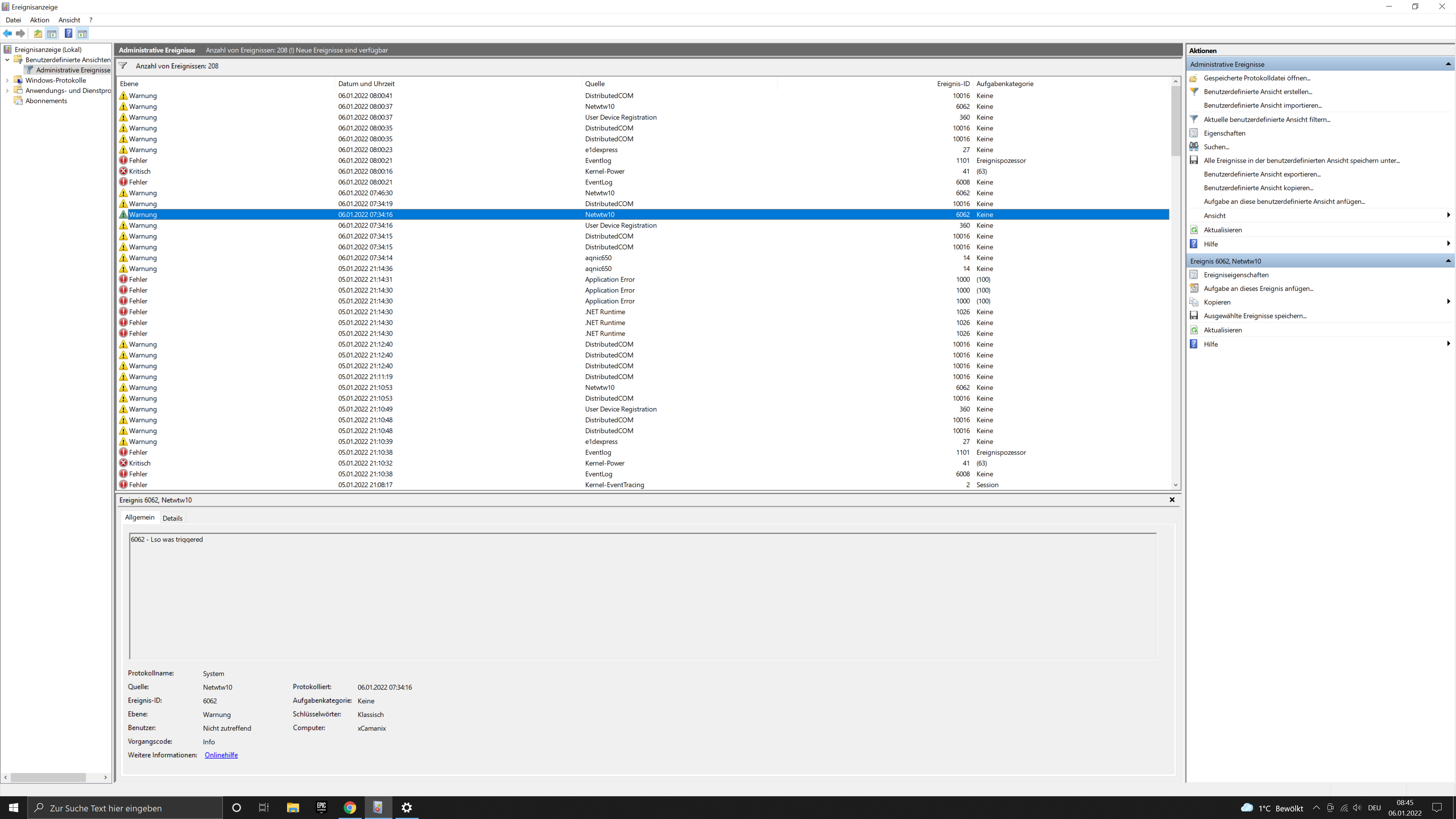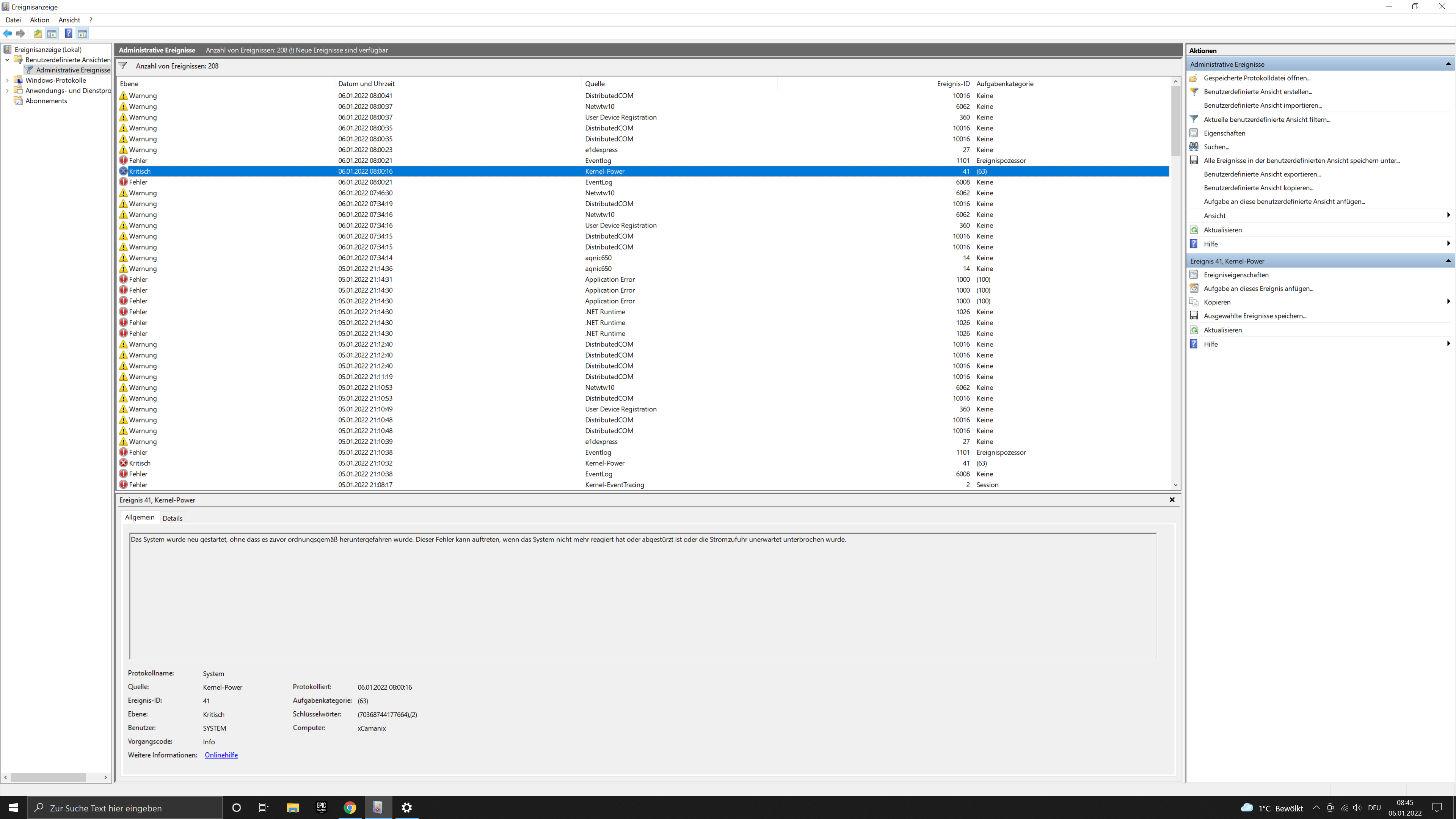 - Zusätzlich pin ich noch screenshots von der Ereignisanzeige an