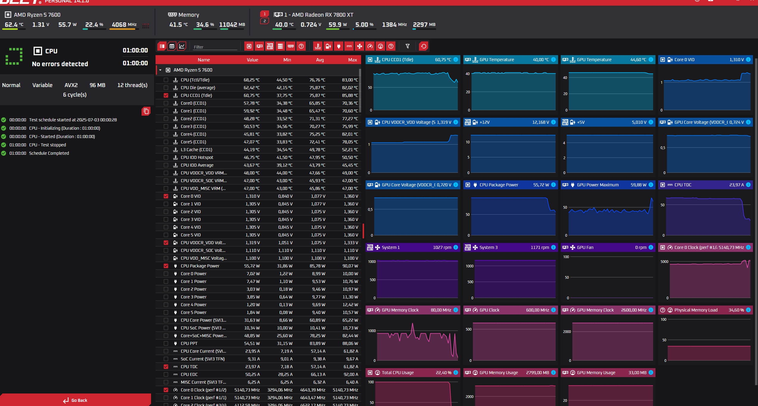 - Stresstests bei jeweils GPU, CPU + RAM, VRAM und POWER über OCCT (kein einziger Error),