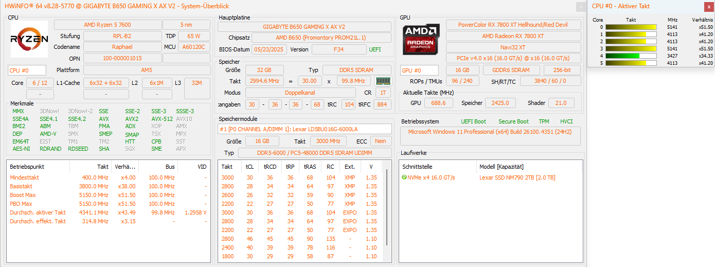 - SSD: Lexar NM790 2 TB, M.2 2280 / M-Key / PCIe 4.0 x4