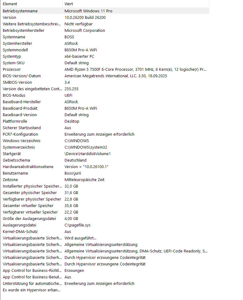 - Mainboard: ASRock b850m pro-a WiFi