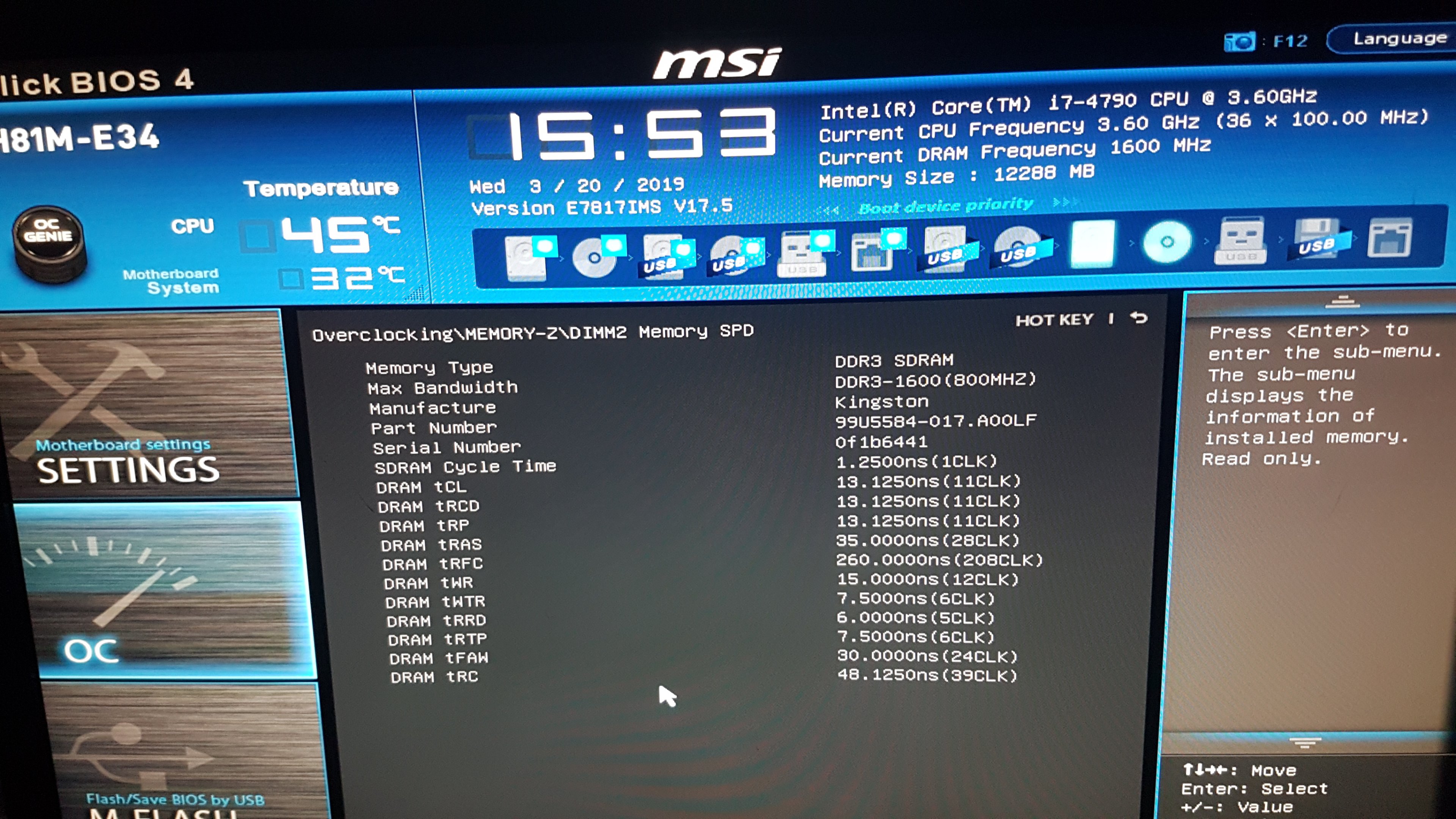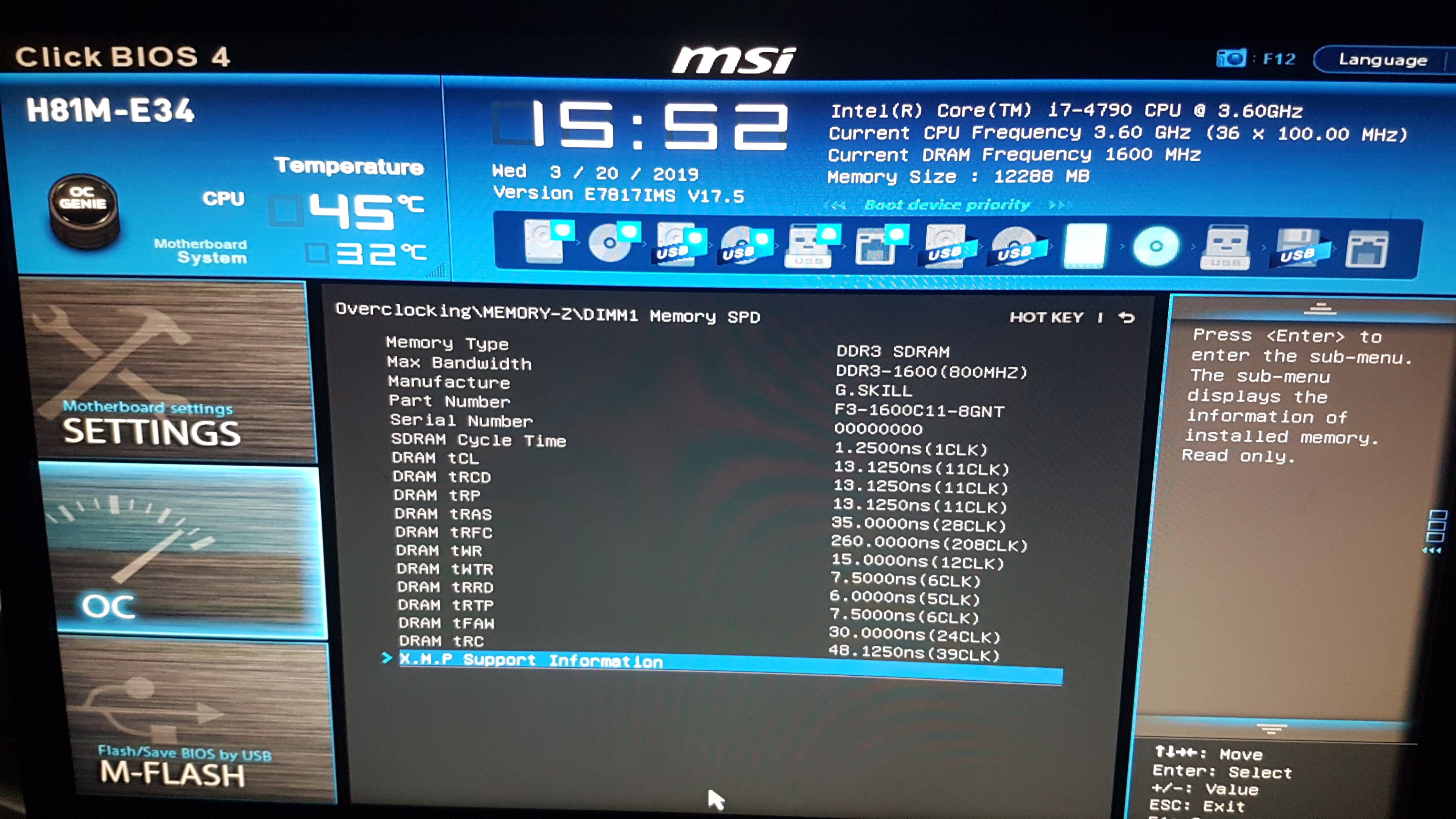 Beide Arbeitsspeicher werden erkannt laut BIOS.