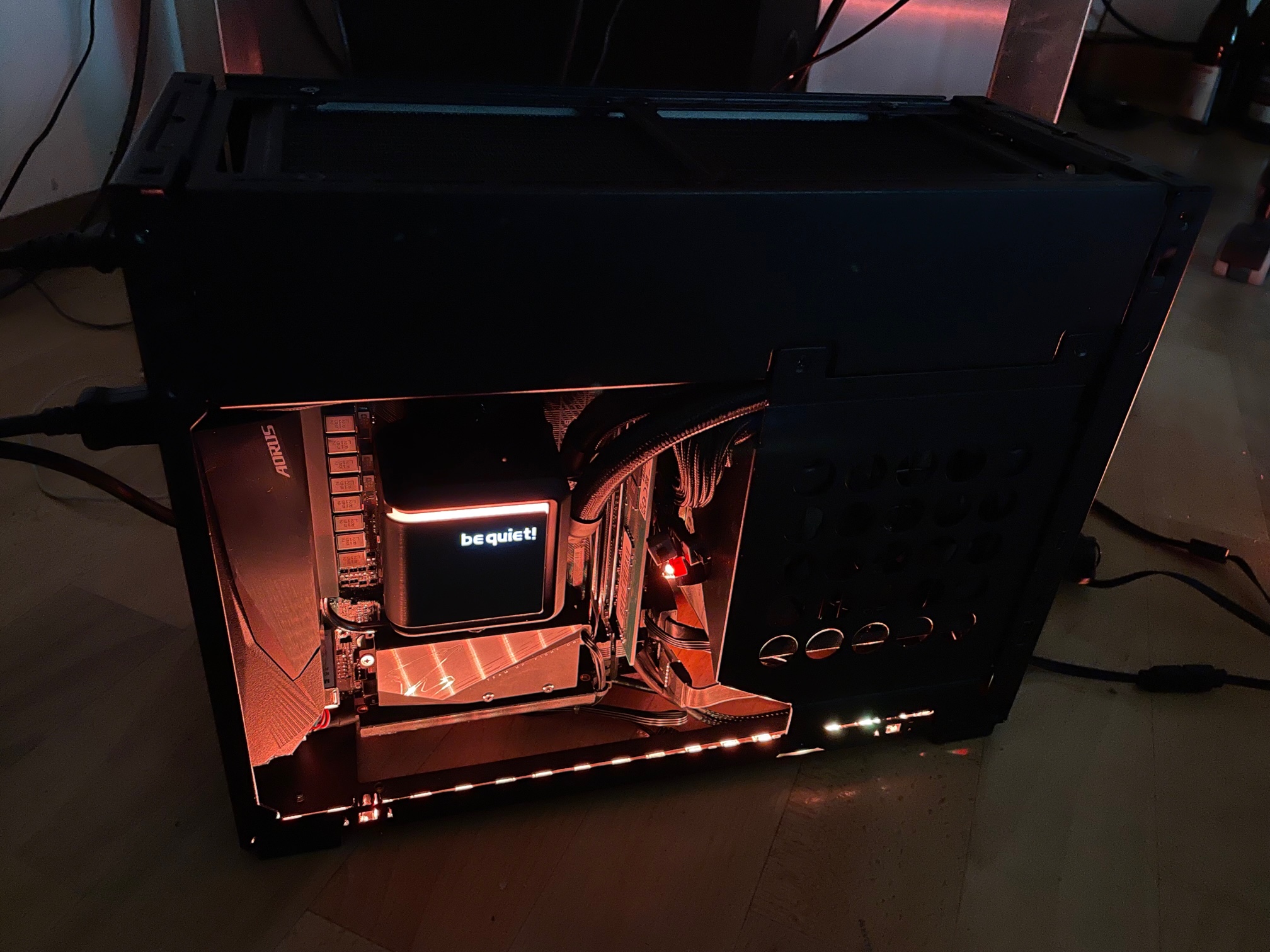 So die Kiste läuft nun endlich seit 5 Tagen im kleinen A4-H2O Gehäuse. Mit dem genannten Gigabyte B550 Board und der Corsair 600W PSU. Bisher keine extreme Probleme wie mit der 600W PSU von be quiet!. Es hat zumindest nichts geraucht