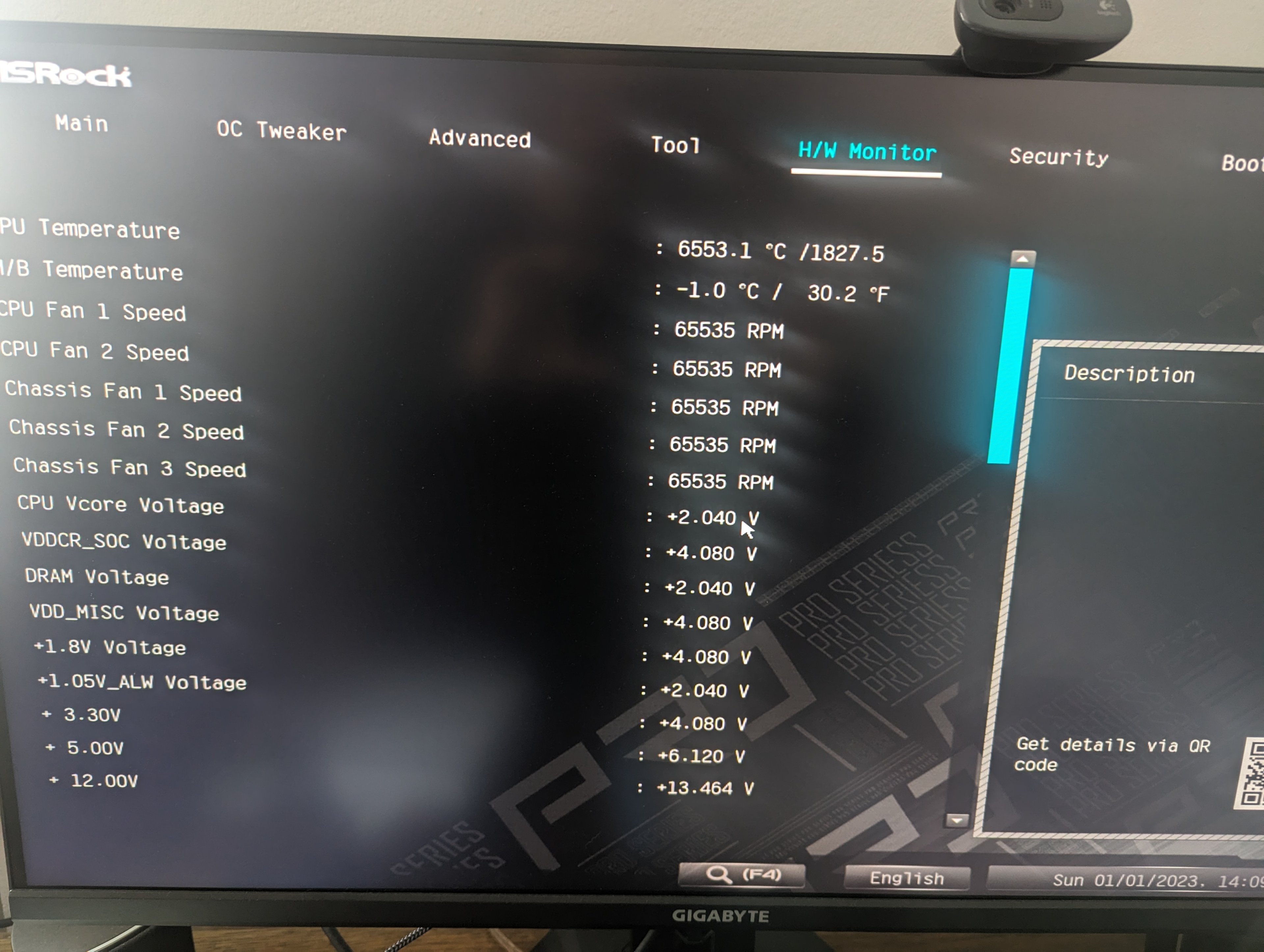 Nach dem Einbau ins Case und Anschluss aller Kabel wird mir nun aber im BIOS etwas von 6550 °C angezeigt?