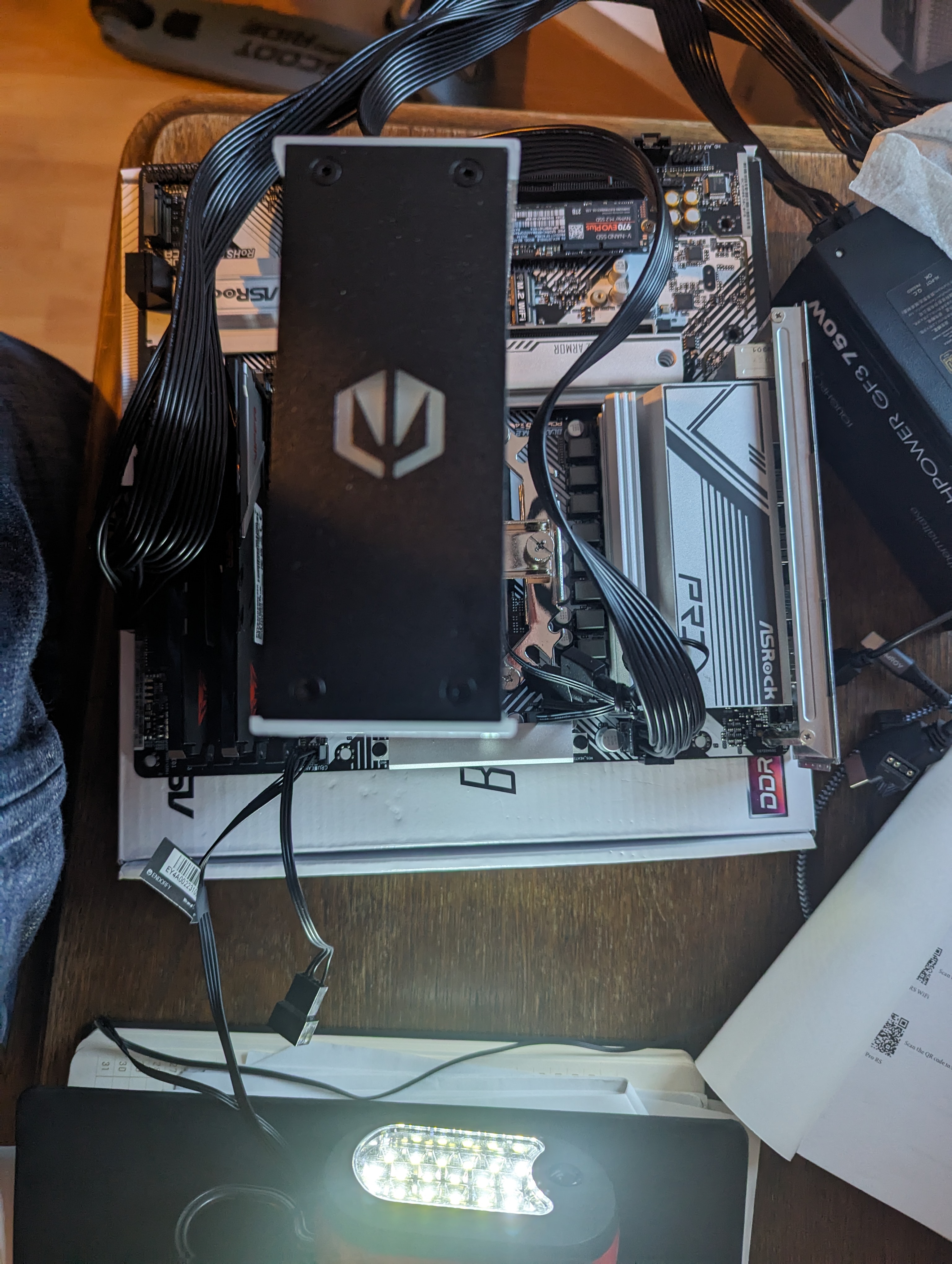 Den Lüfter habe ich von der Heatpipe abgenommen und nochmal alle Schrauben gelockert, um den Kühler etwas weiter gegen den Uhrzeigersinn zu drehen. Der sitzt aber fest in den vorgesehenen Öffnungen. Die Heatpipe selber ist nur an zwei Schrauben befestigt. Da kann ich wenig beeinflussen.