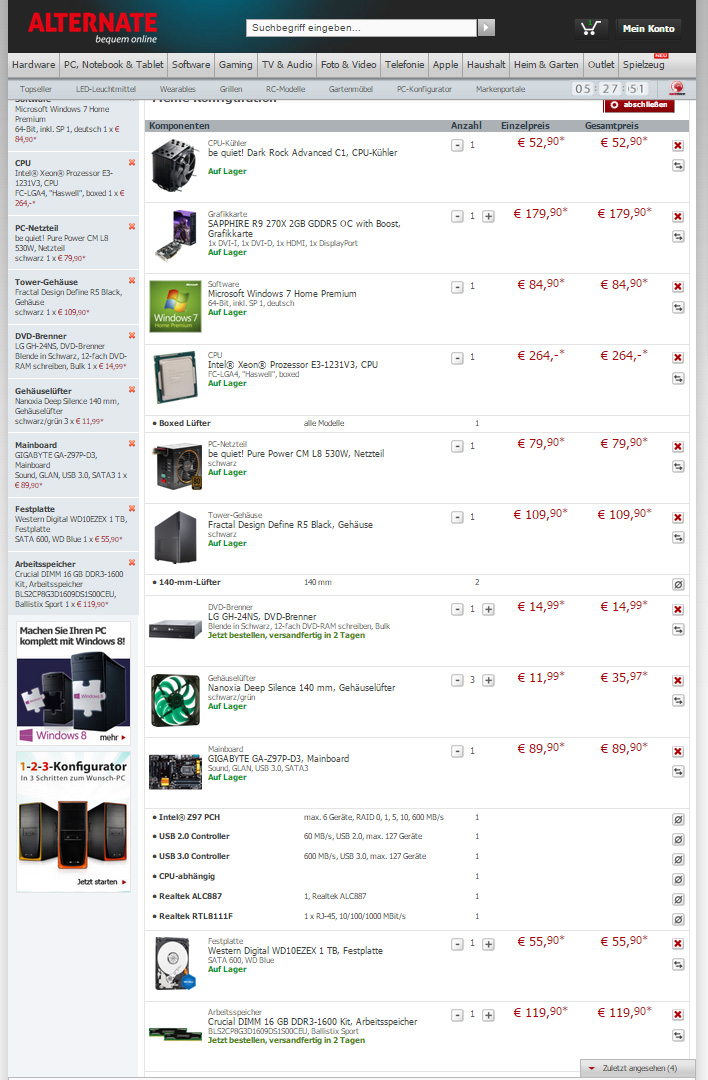 Mainboard: Irgendein H97-Board (will nicht übertakten) von Gigabyte oder MSI. Grad bei Gigabyte gibts scheinbar mehrere Versionen, da find ich es doch ein wenig verwirrend. Das Board soll gerne unter 100€ kosten. Bin aber auch für Alternativen anderer Hersteller offen.