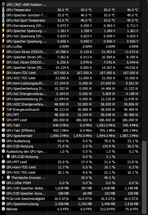Bereits habe ich in der AMD Software diverse Einstellungen (Grafikprofil: eSports und dieses noch weiter personalisiert sowie auch schon mal RSR ausprobiert) vorgenommen und in Windows selbst den Energiesparplan auf Höchstleistung umgestellt und den Spielmodus aktiviert. Bei den Windows Grafikeinstellungen konnte ich Fortnite leider nicht auswählen. Ein BIOS Update für das Mainboard (MSI B550-A Pro) habe ich ebenfalls schon vorgenommen (Version: 7C56vA8 vom 20.12 2021). Leider bin ich selbst nicht sonderlich Computer affin und schaffe es daher nicht den Fehler selbst zu finden.