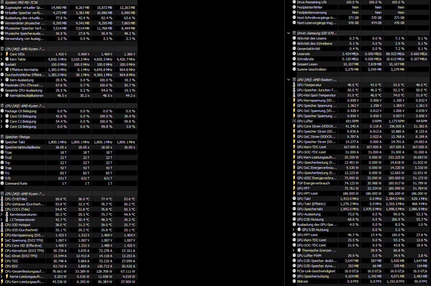 Ich würde gerne mal live und in Farbe sehen, wie die Drops aussehen und was deine Komponenten währenddessen treiben. Dazu nutzt du am besten ein Overlay und lässt dir die relevanten Daten während dem Spielen einblenden. Bitte auf aufschlussreiche Beschriftung achten. Folgende Werte währen wichtig: