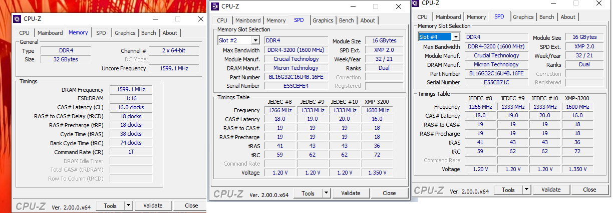 Und von CPU-Z Memory und von SPD jeweils die Ramslots ein Screenshot.