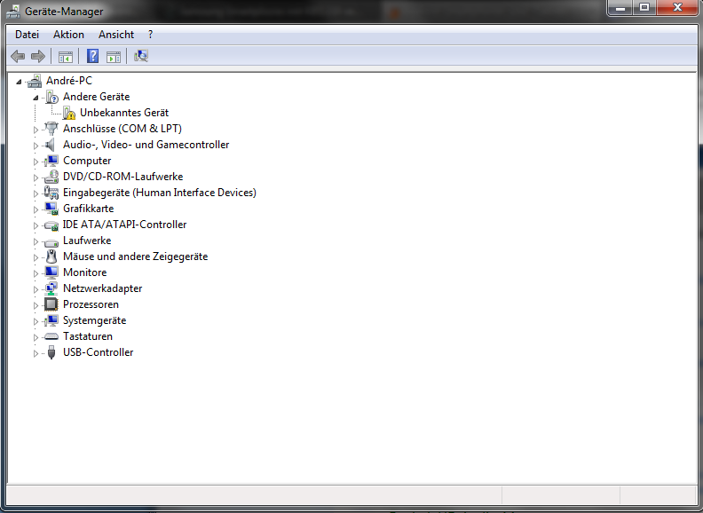 Wenn ich im Gerätemanager bei "Unbekanntes Gerät" auf Treiber aktualisieren klicke, findet er nix.