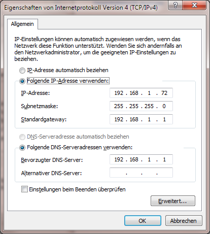 Nur die vom Router, für den Rechner musst Du ja eine andere feste IP vergeben, eine die noch nicht vergeben wäre. Welchen Router hast Du denn?