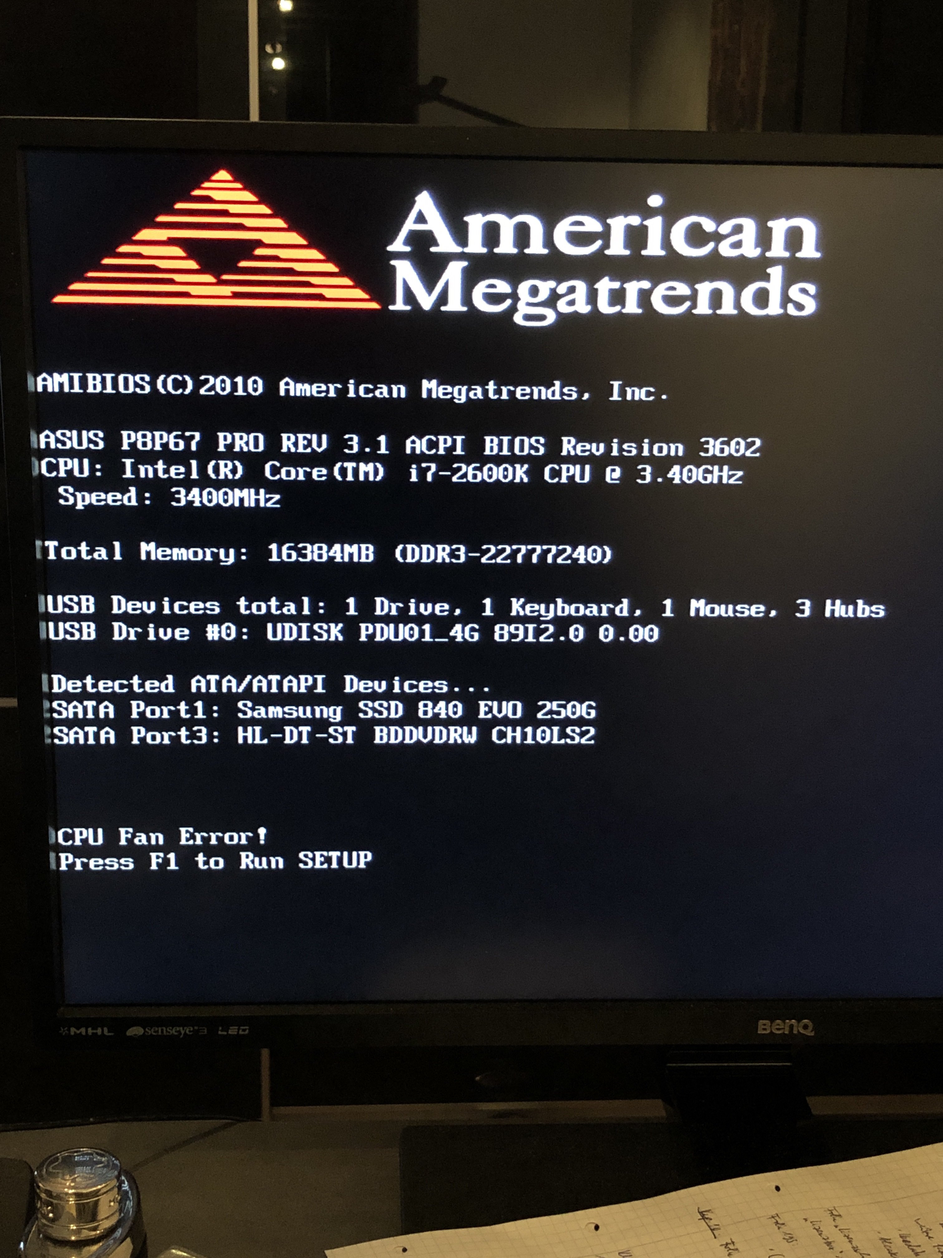 Die Drehzahl des CPU-Fan wird überwacht und ist gerade niedriger als im Bios das Limit gesetzt wurde. Kannste anpassen oder, falls der Lüfter wirklich zu lahm ist, halt den Lüfter schneller einstellen. Auch im Bios.