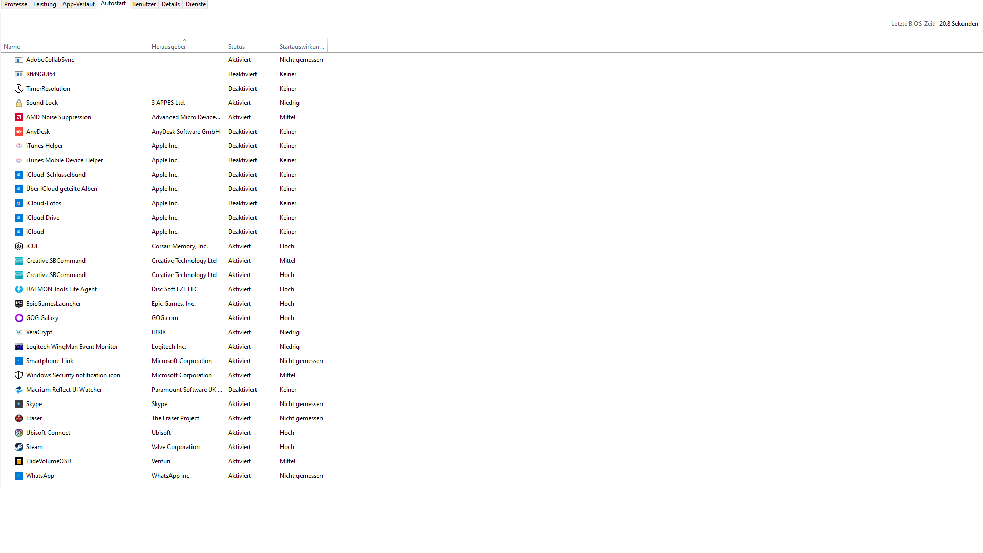 Weiters habe ich malwarebytes, ASRock A-Tuning, MSI Afterburner installiert. Alle jedoch ohne Autostart und entsprechend ohne Gebrauch.