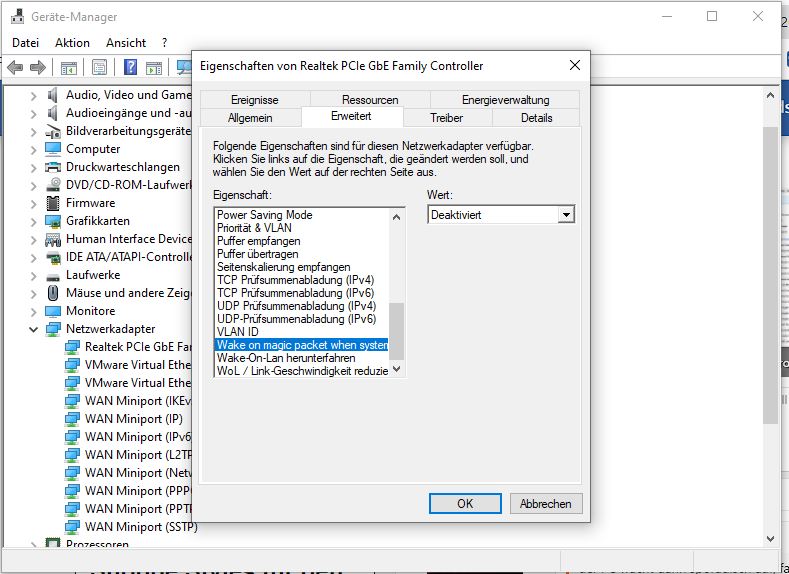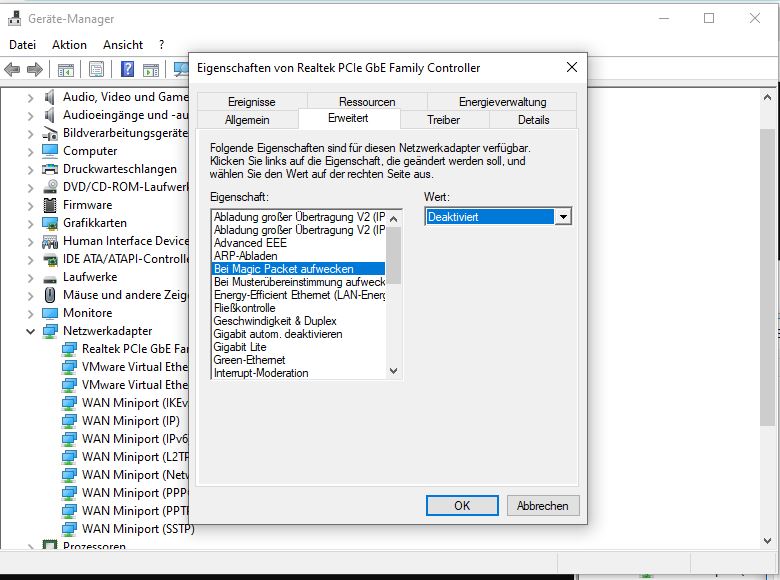 Deshalb habe ich dir dann die Einstellungen der Netzwerkkarte gezeigt. Ich weiß nicht, was überhaupt Wake on Lan oder Magic Paket ist. Bewusst tu ich da nix ansteuern.eYc schrieb:Sieht nach Aktivitäten der Netzwerkkarte aus, kann man im UEFI oder Gerätemanager deaktivieren.