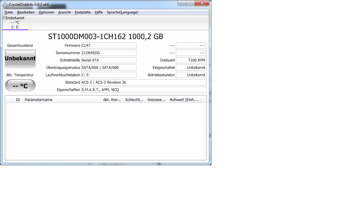 Was mich nun zu meiner Annahme bringt, dass das ganze an der Festplatte liegt, ist Folgendes: Wenn ich das Setup der Windows Installations-CD starte findet er bei den Partitionen die Festplatte nicht mehr bzw. zeigt gar keine Partitionen an.