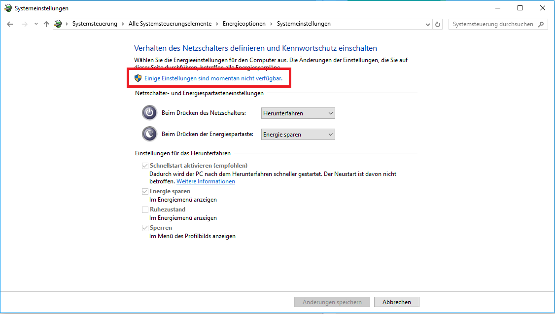 Dann solltest du die gleichen Einstellungen haben wie alle anderen Windows 10 User auch. Schau da nochmal rein, so wie ich schon beschrieben habe. Auf meinen Screenshots ist mit roten Kästen markiert was du klicken musst. Erst oben die Einstellungen freischalten und dann UNTEN unter der Einstellung für den Netzschalter ist die Einstellung für den Schnellstart! Mach den einfach Mal aus. Das sollte eindeutig sichtbar sein anhand meiner Beschreibung und der Screenshots.