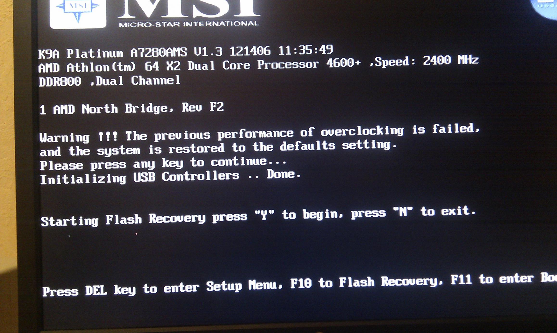 4) Ich schalte den Rechner ein und es kommt die Meldung das ich den Rechner Overklocked Hätte und er sich in seine Settings zurückgesetzt hätte (direkt beim Einschalten)