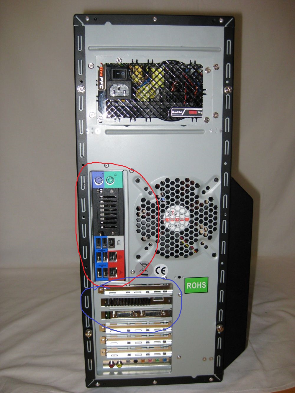 PS: Der Rechner fährt hoch, das Windows Piep für die Anmeldung hör ich in meinem Kopfhöhrer und Lüfter arbeiten auch
