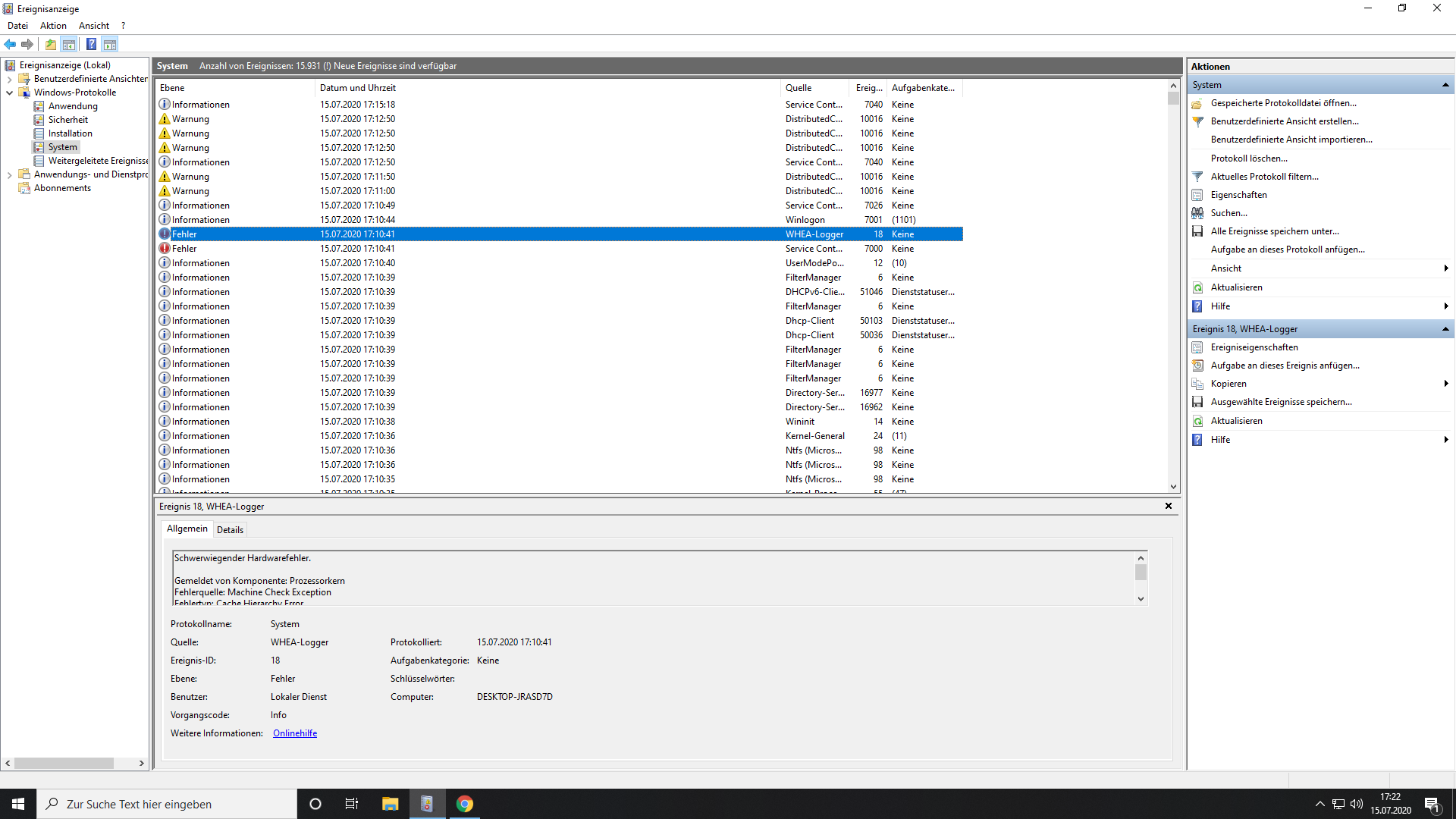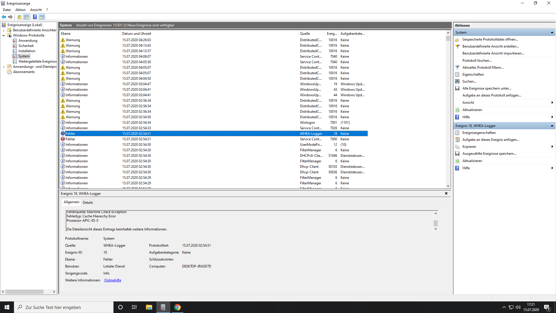 heut nacht um 3 ca und jetzt gegen Mittag ebend hat mein PC einfach neugestartet.(ging einfach aus, wieder an)
