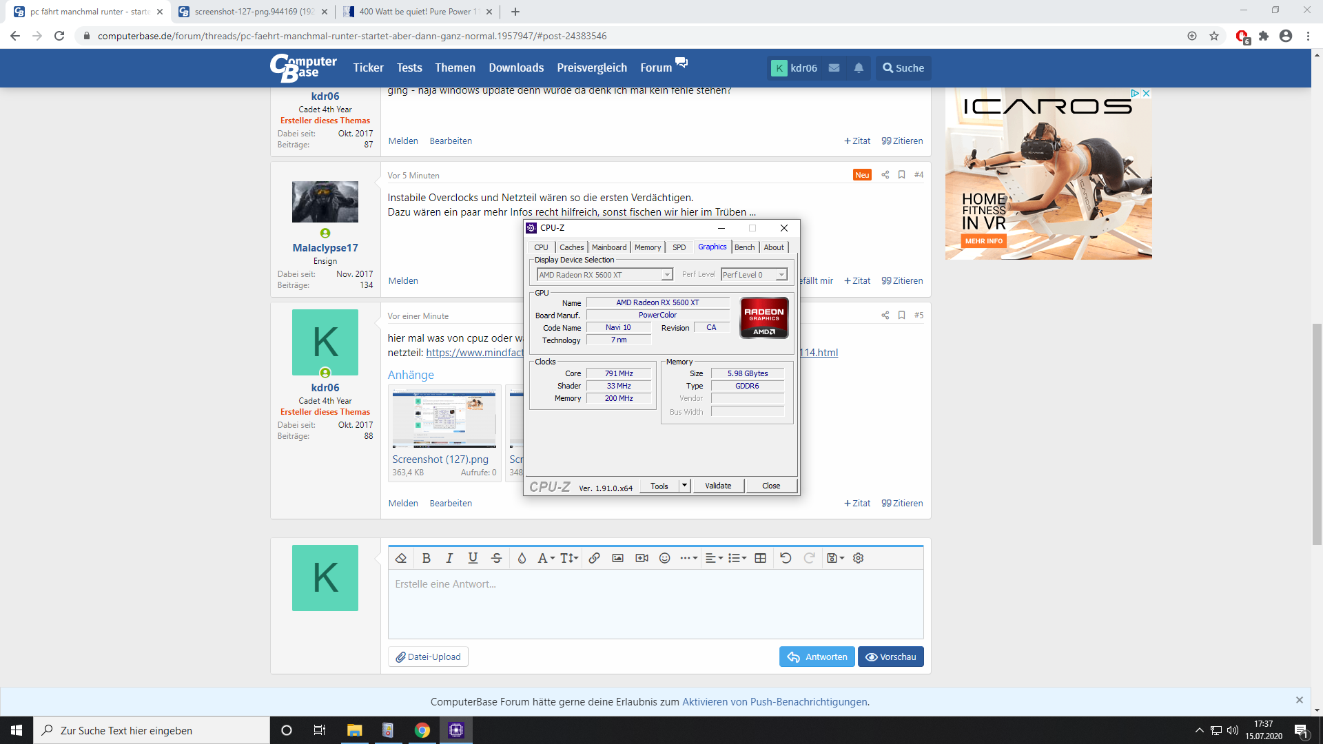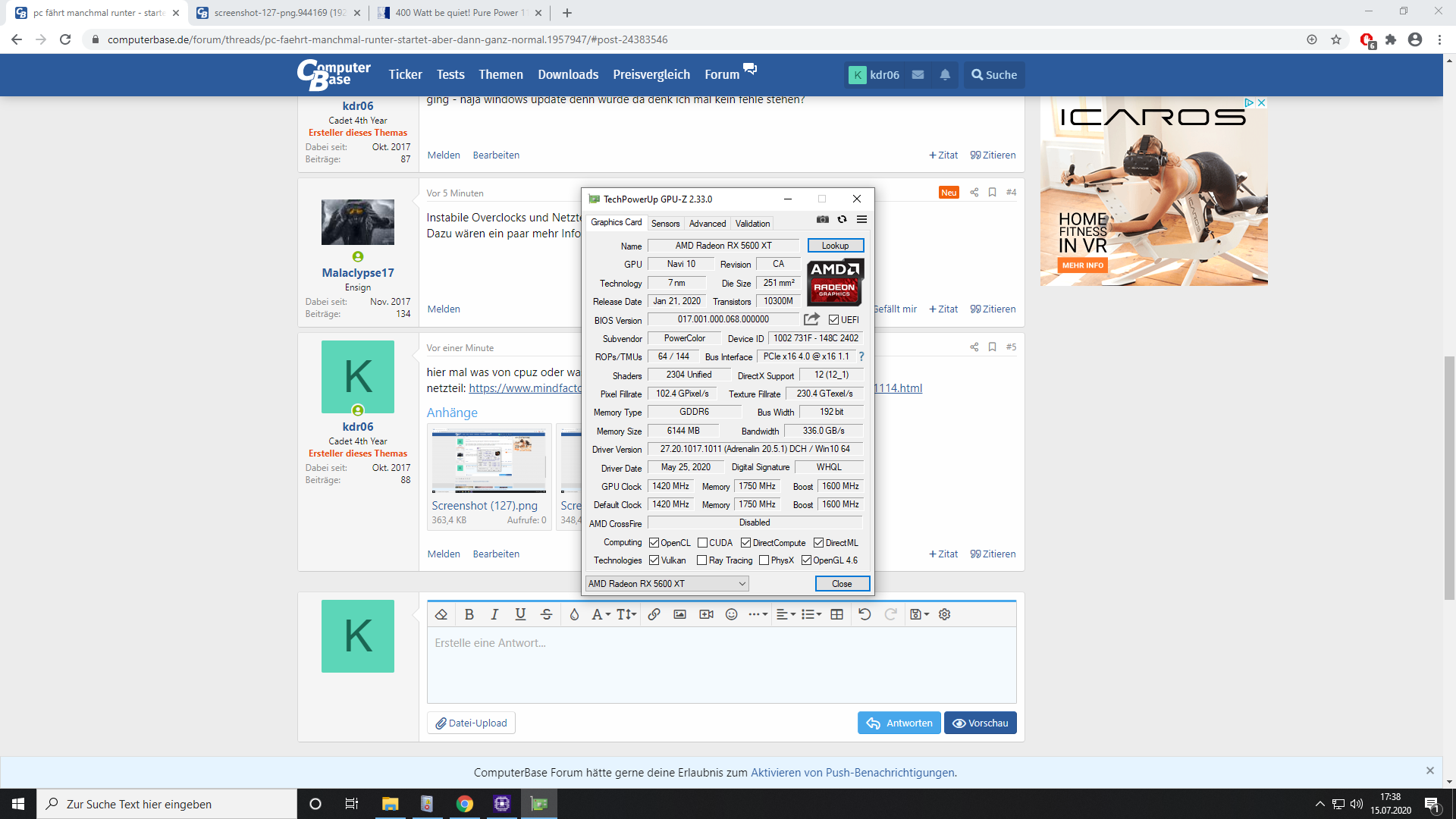 Mainboard wäre: https://www.asrock.com/MB/AMD/B450M-HDV R4.0/index.de.asp