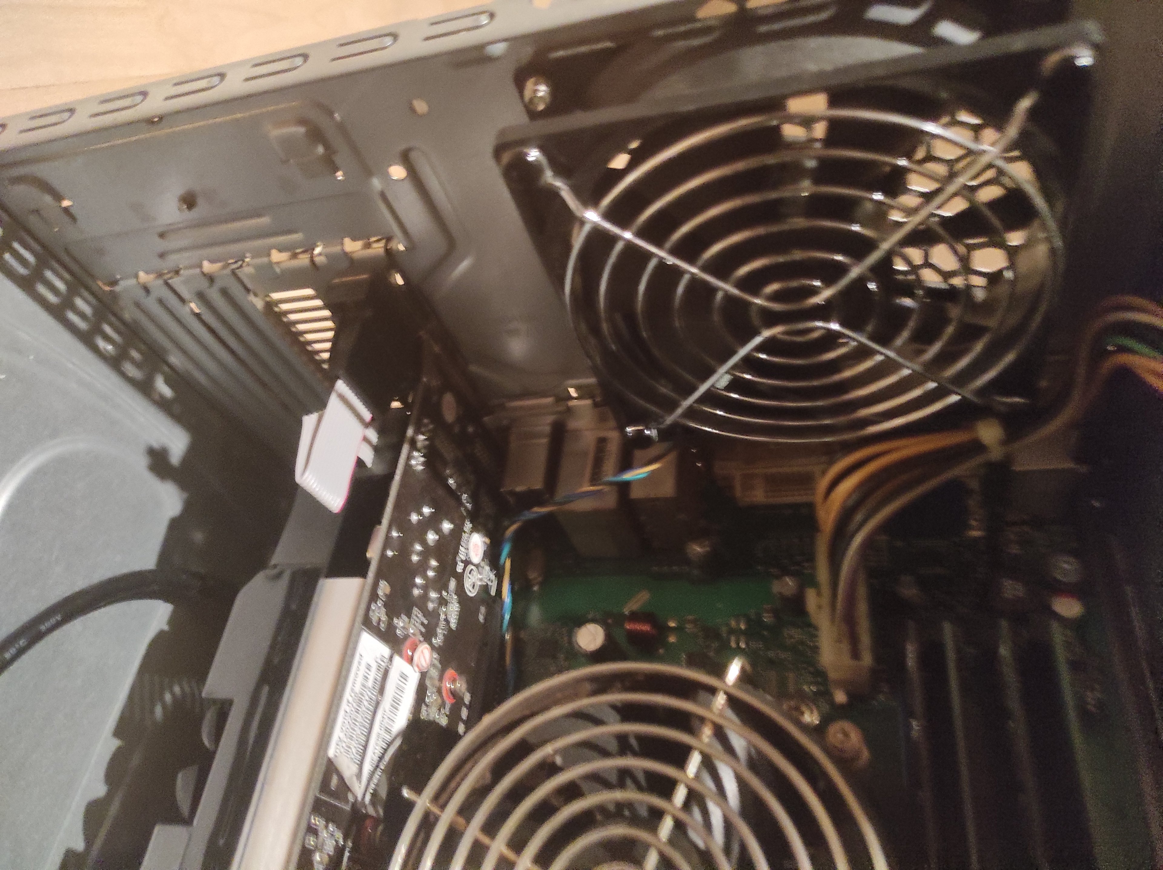 3. Wenn das alles erledigt ist, PC starten und genau beschreiben was passiert. Gibt es Lichter auf dem Mainboard? Ein Foto vom inneren würde ebenfalls nützlich sein.