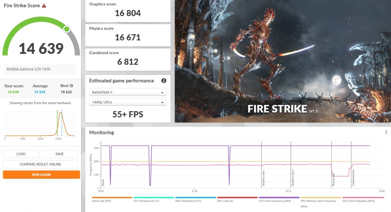 Bevor ich danach meine Grafikkarte wieder eingebaut habe, habe ich noch denn Fire Strike GPU-Test mit 3DMark durchgeführt.
