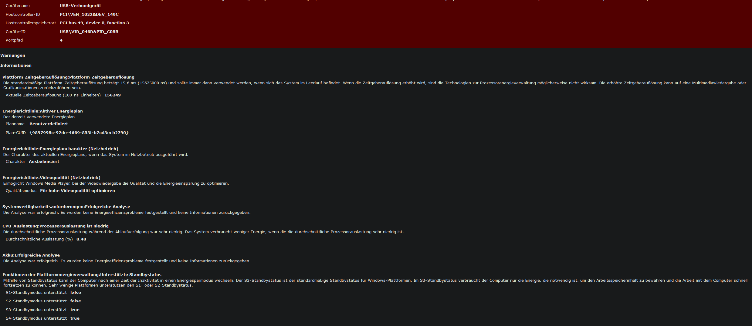 Mein Energy Report sieht jetzt nach Änderung des minimalen Leistungszustandes so aus :