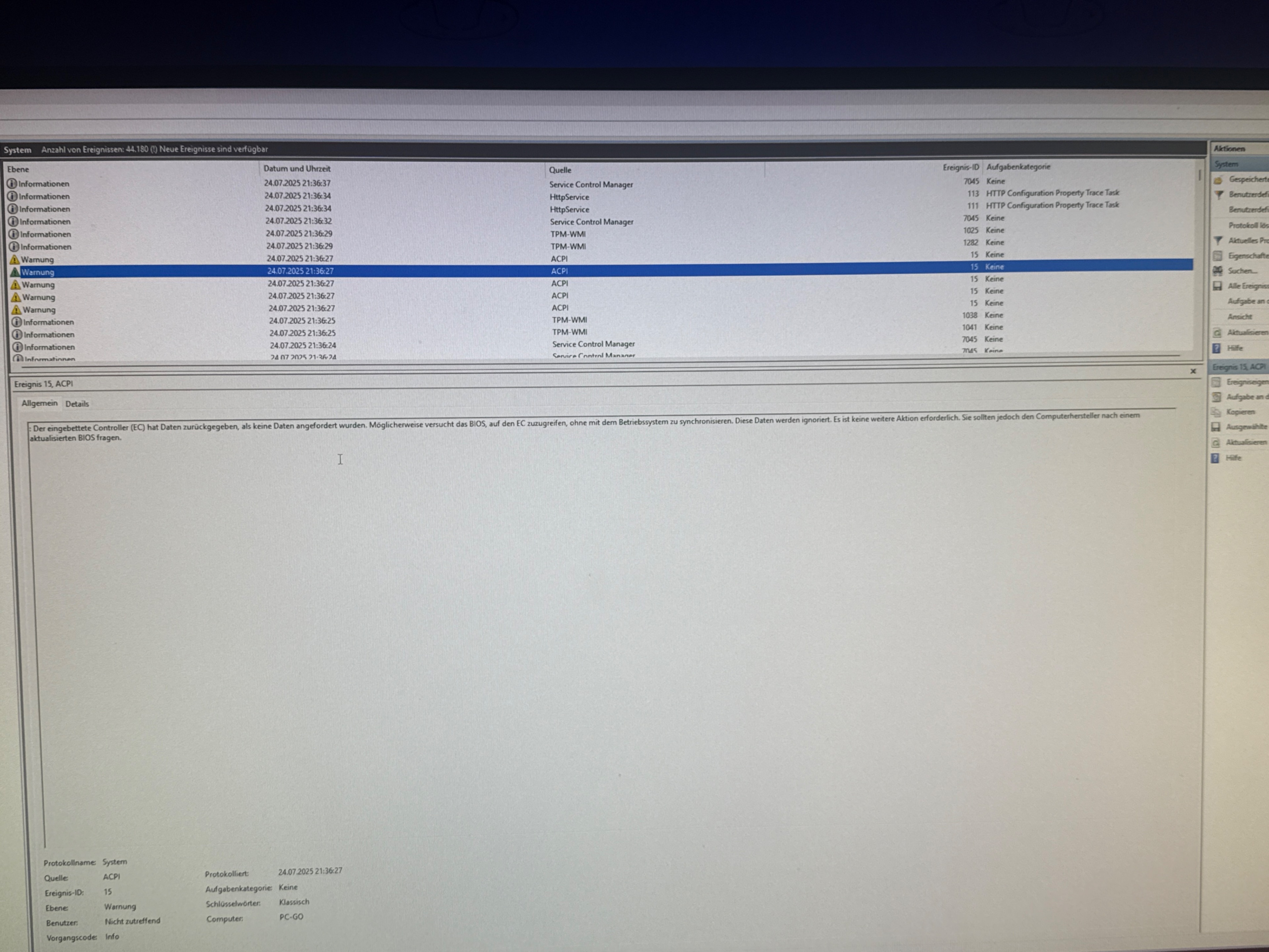 Das eingebettete Controller (EC) ACPI-Ereignisobjekt wurde nicht empfangen. Dies deutet darauf hin, dass der ACPI BIOS nicht richtig implementiert ist.