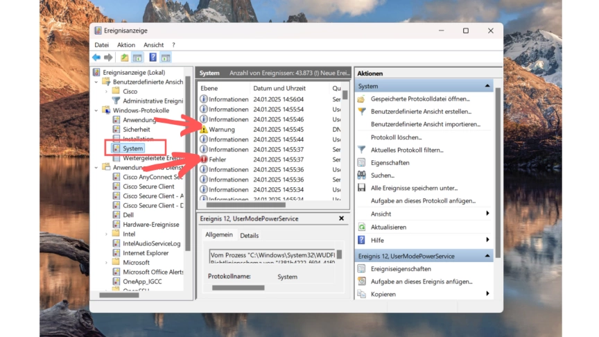 Einfach "ereignisanzeige" in das Windows-Suchfeld eingeben bzw. mit geöffnetem Windows-Start-Menü, wie in Schritt 1, 2 und 3 in diesem Link beschrieben: