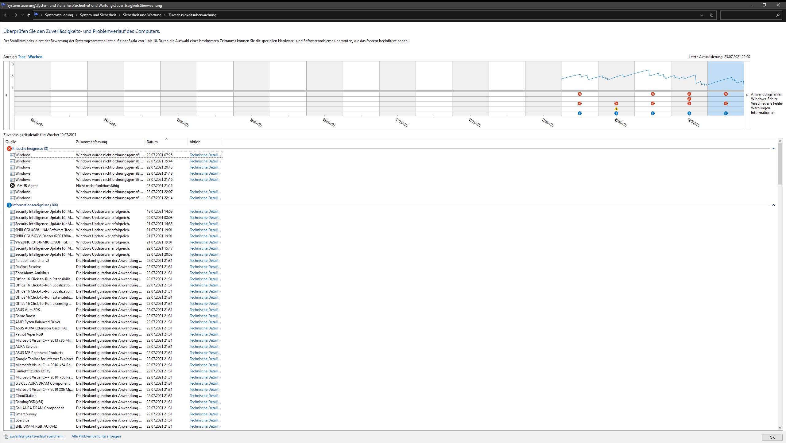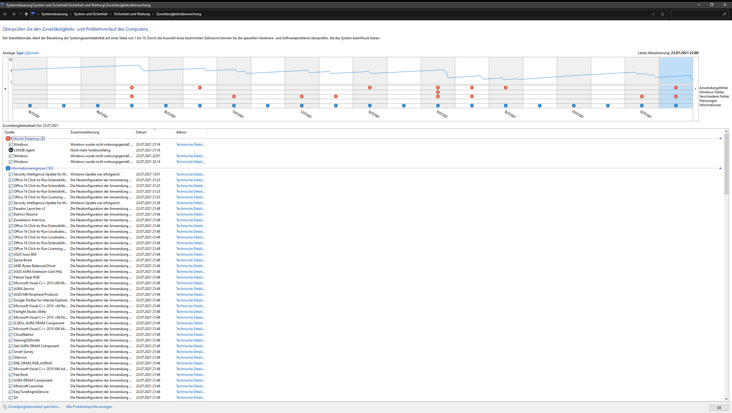Der Zeitpunkt der Fehlermeldung passt mit der Uhrzeit überein wenn der PC herunterfährt.