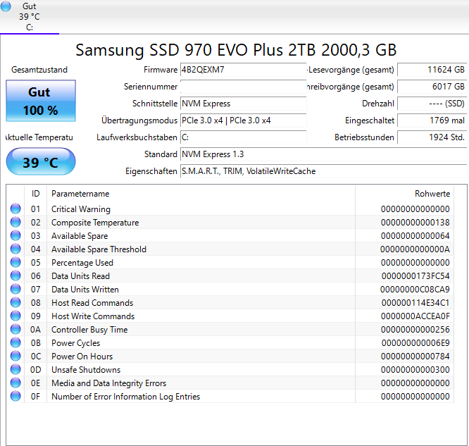 Die Smart-Werte der SSD habe ich ebenfalls angehängt.
