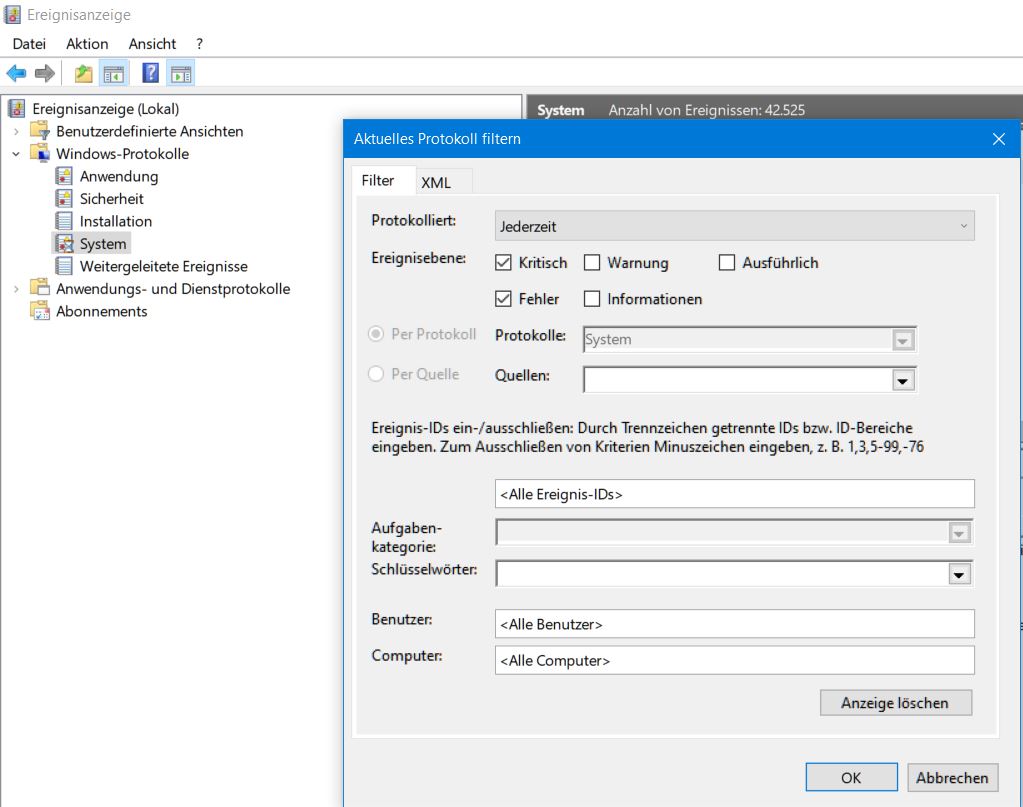*zur Info: Das Herunterfahren erfolgte meist nicht unter Last. Manchmal im kompletten Leerlauf, manchmal in z.B. Word oder Excel.