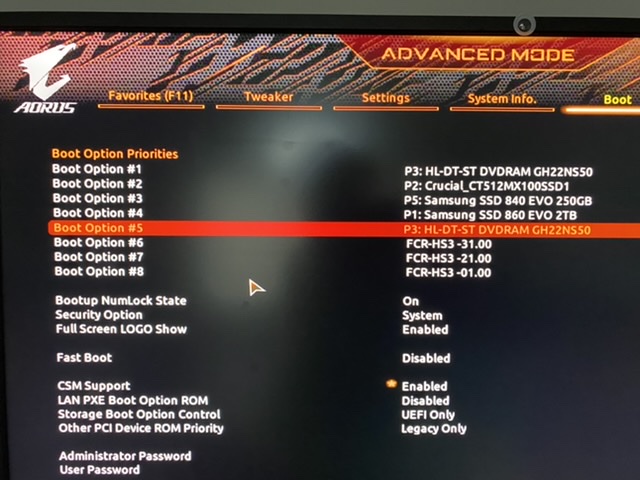 Habe jetzt seit kurzem das Problem, dass beim Booten kein Windows mehr gefunden wird und ich werde aufgefordert ein bootfähiges device einzulegen und eine Taste zu drücken. Wenn ich auf reset am Gehäuse drücke und ins Bios gehe, sehe ich den Windows Boot Mgr auf der Crucial SSD, den ich anschließend auf Prio1 stelle. Dann speicher und schließeich das Bios, habe aber das gleiche problem wieder. Sofern ich in die Bootauswahl über f12 gehe, sehe ich den Windows Boot Mgr nicht mehr.
