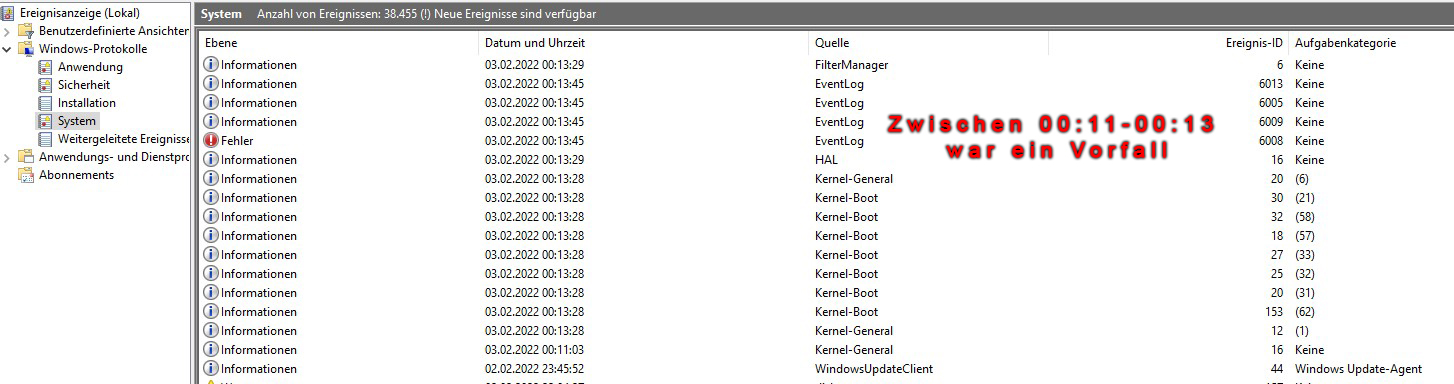 In der Ereignisanzeige finde ich zum PC Freeze auch nichts an Fehlern unter System