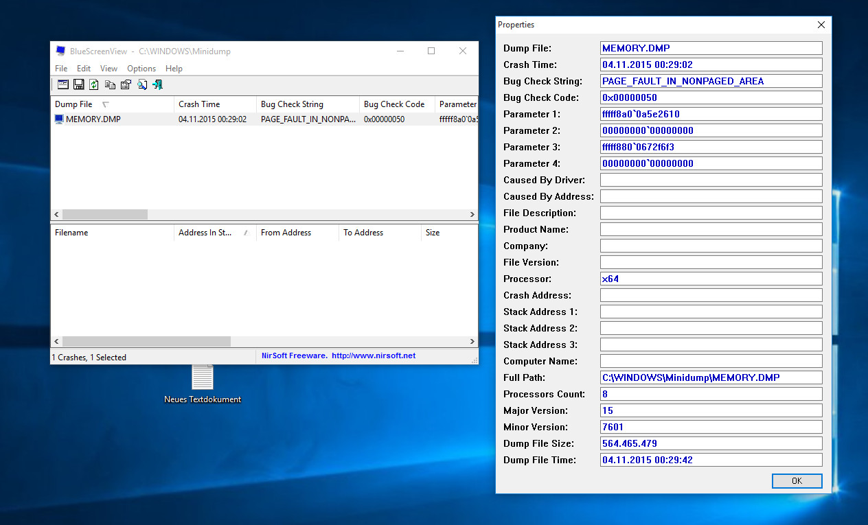Den Rechner habe ich nun schon eine ganze Weile, Mitte März dieses Jahr kam dann die Grafikkarte dazu und vor ca. 2 Monaten ging es los. Zu der Zeit war noch Windows 7 64bit installiert als ab und zu der PC auf dem Desktop oder beim Youtuben abstürzte, Bild bleibt stehen, Sound wiederholt sich ständig taktaktaktaktak… Bluescreen und aus…
