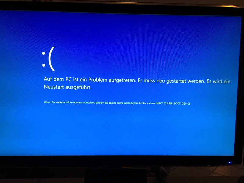 Nach dem Bluescreen und Power-Knopf-Reset bekommt der Bildschirm kein Signal,
